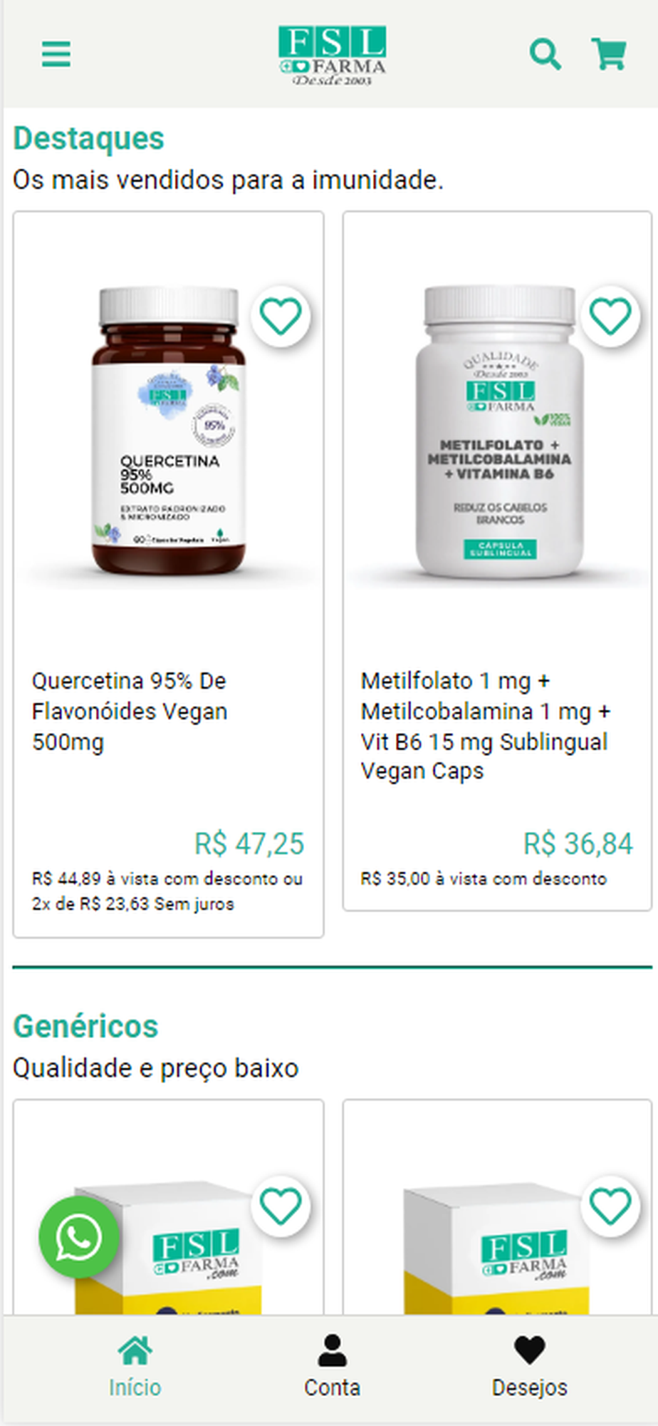 FSL Farma, a farmácia que você confia! Compre sem sair de casa, e receba seus medicamentos produzidos com a melhor qualidade, e preços que cabem no seu bolso.