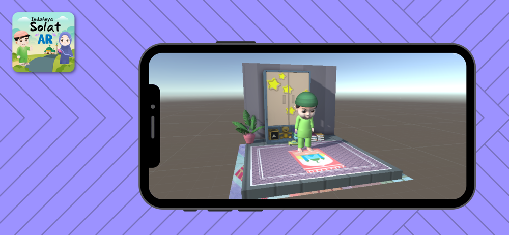 Indahnya solat mengetengahkan cara perlaksanaan solat melalui animasi 3D yang dilengkapi dengan audio bacaan-bacaan dalam solat. Teknologi AR (Augmented Reality) digunakan sebagai alat bantu mengajar anak-anak tentang solat dan rukunnya.