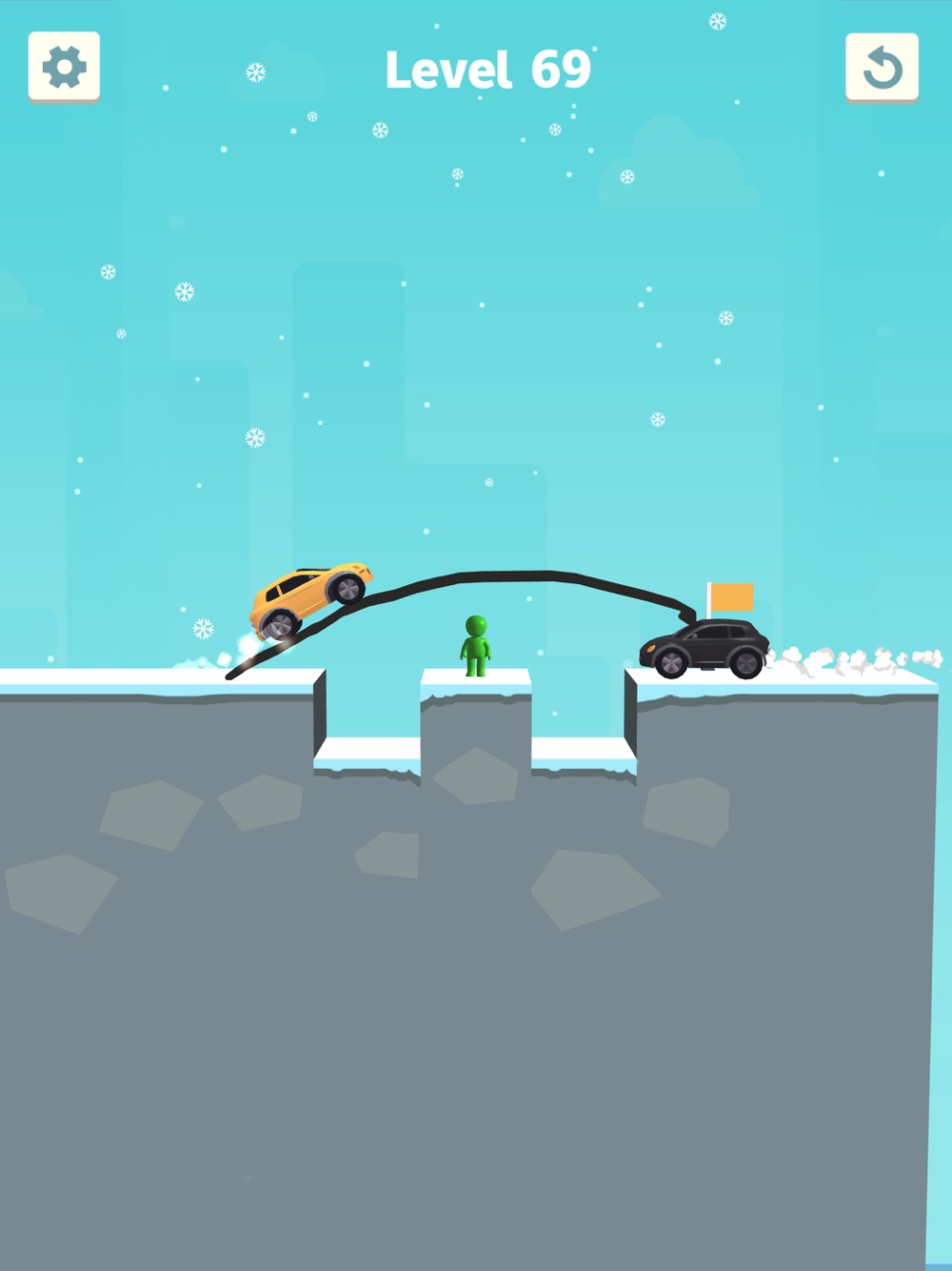 从起点到终点中间不仅有各种悬崖坑洞,还有无辜路人,过路车辆以及各式机关。开动思维,用手滑动来画出路,保证路人安全且车子顺利到达终点就能获得获得胜利,快来体验吧!