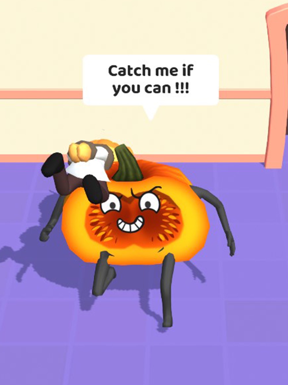 Unlock rooms to find the pumpking, use skills to kill his vegetable minions