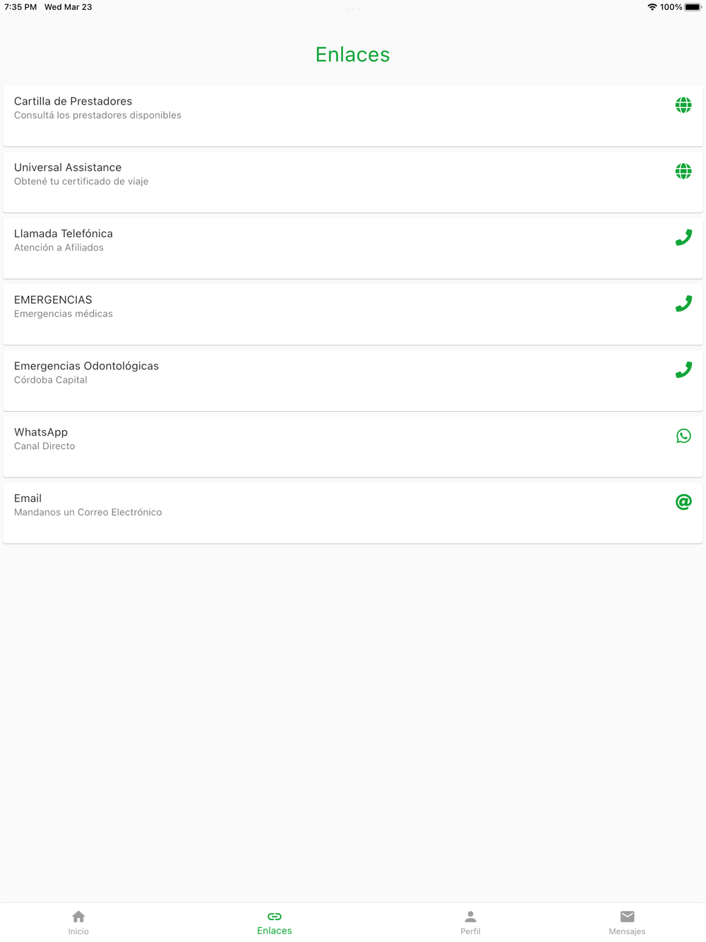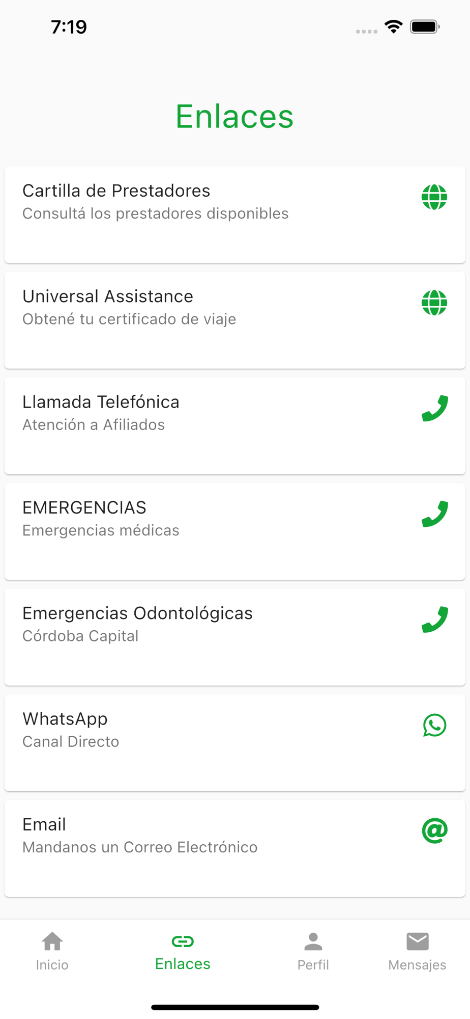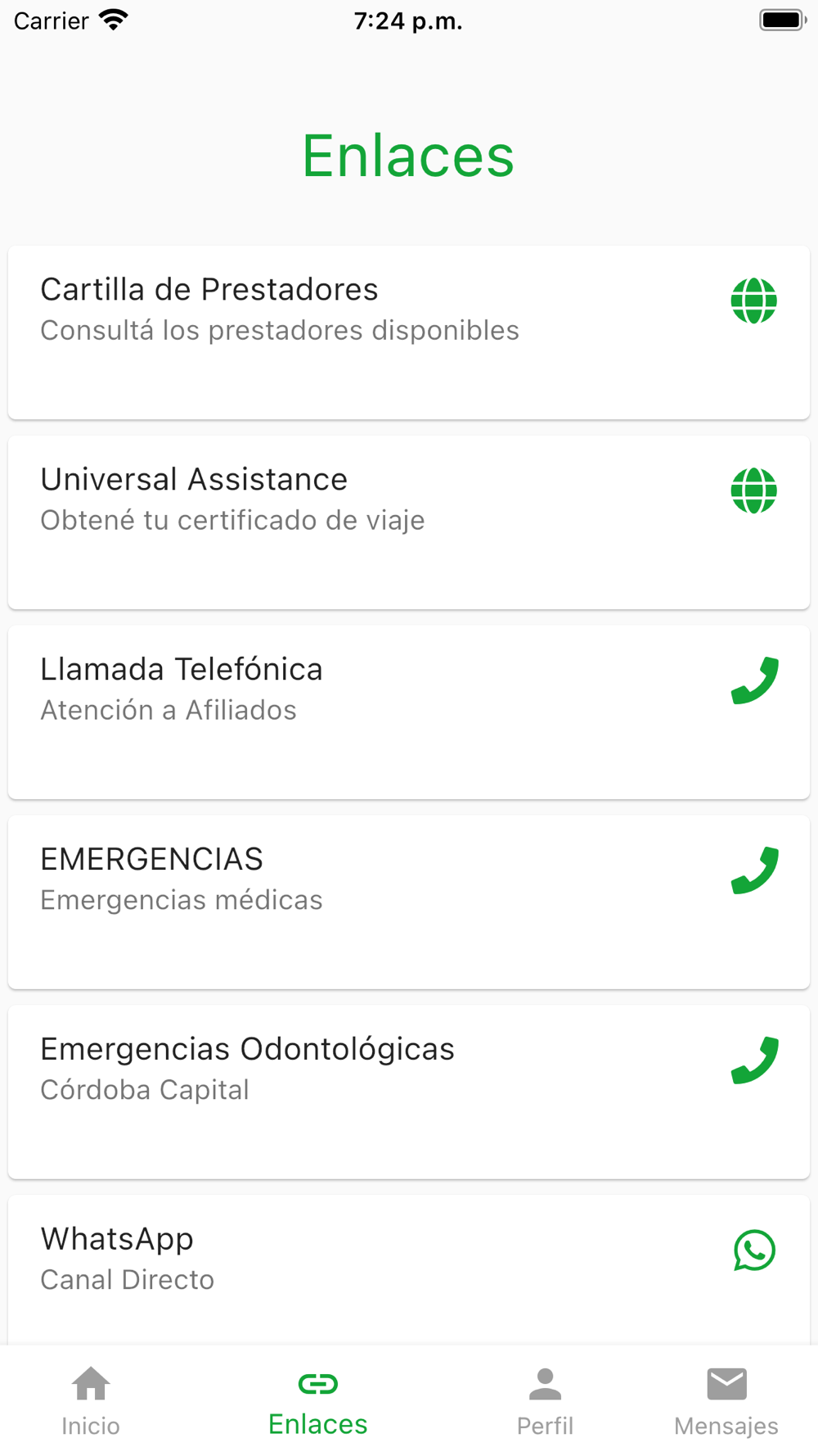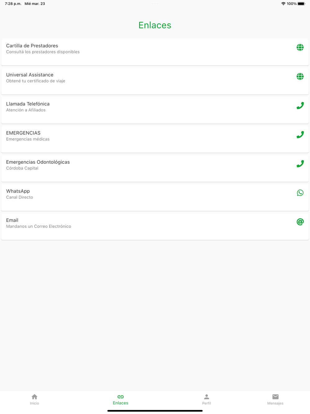 • Consultar la cartilla de prestadores y farmacias, información de contacto y ubicación.
