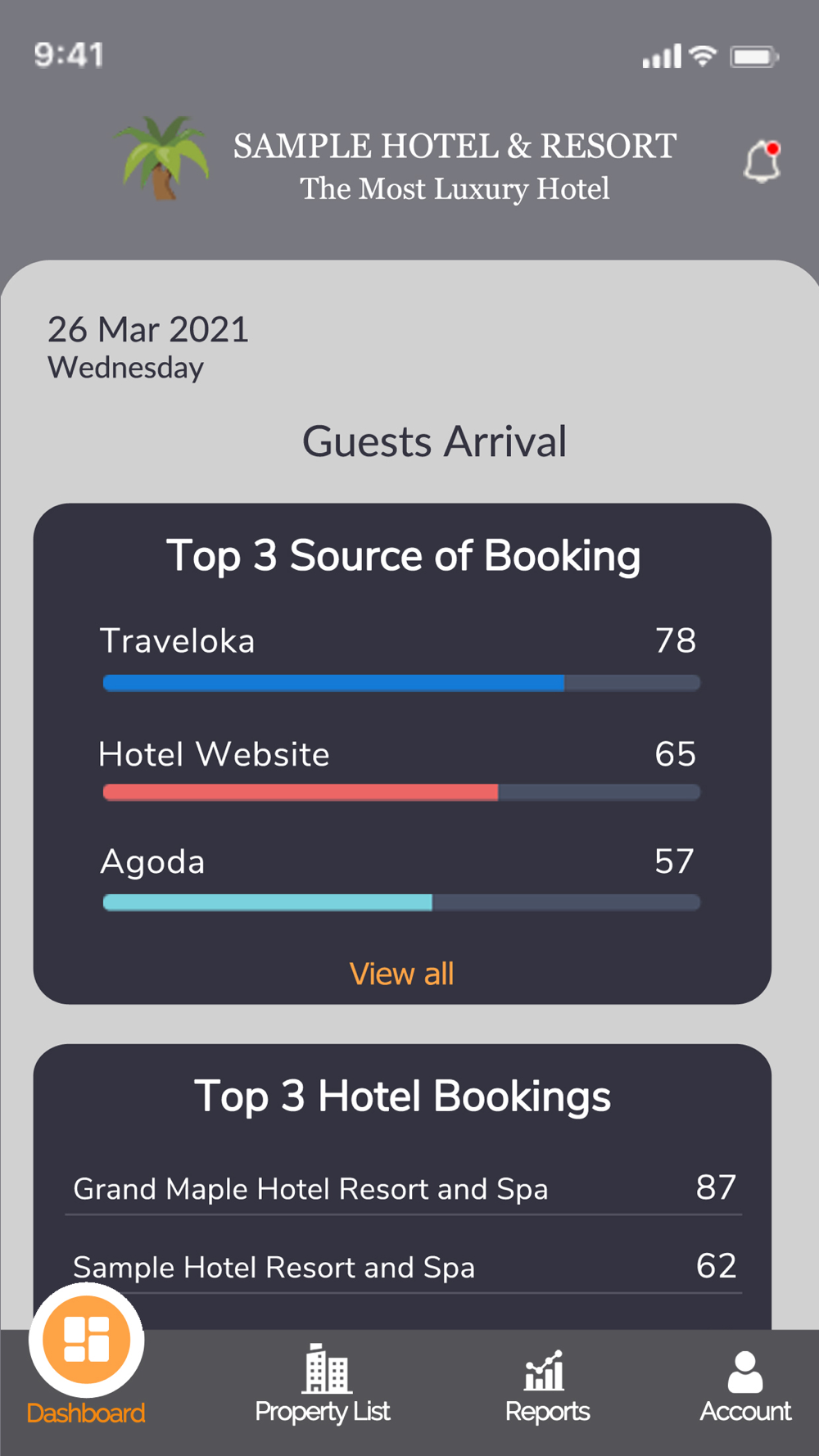 Managing hotel rates, inventory and report from mobile app. Convenient and easy to use for hotels to keep track on their bookings update.