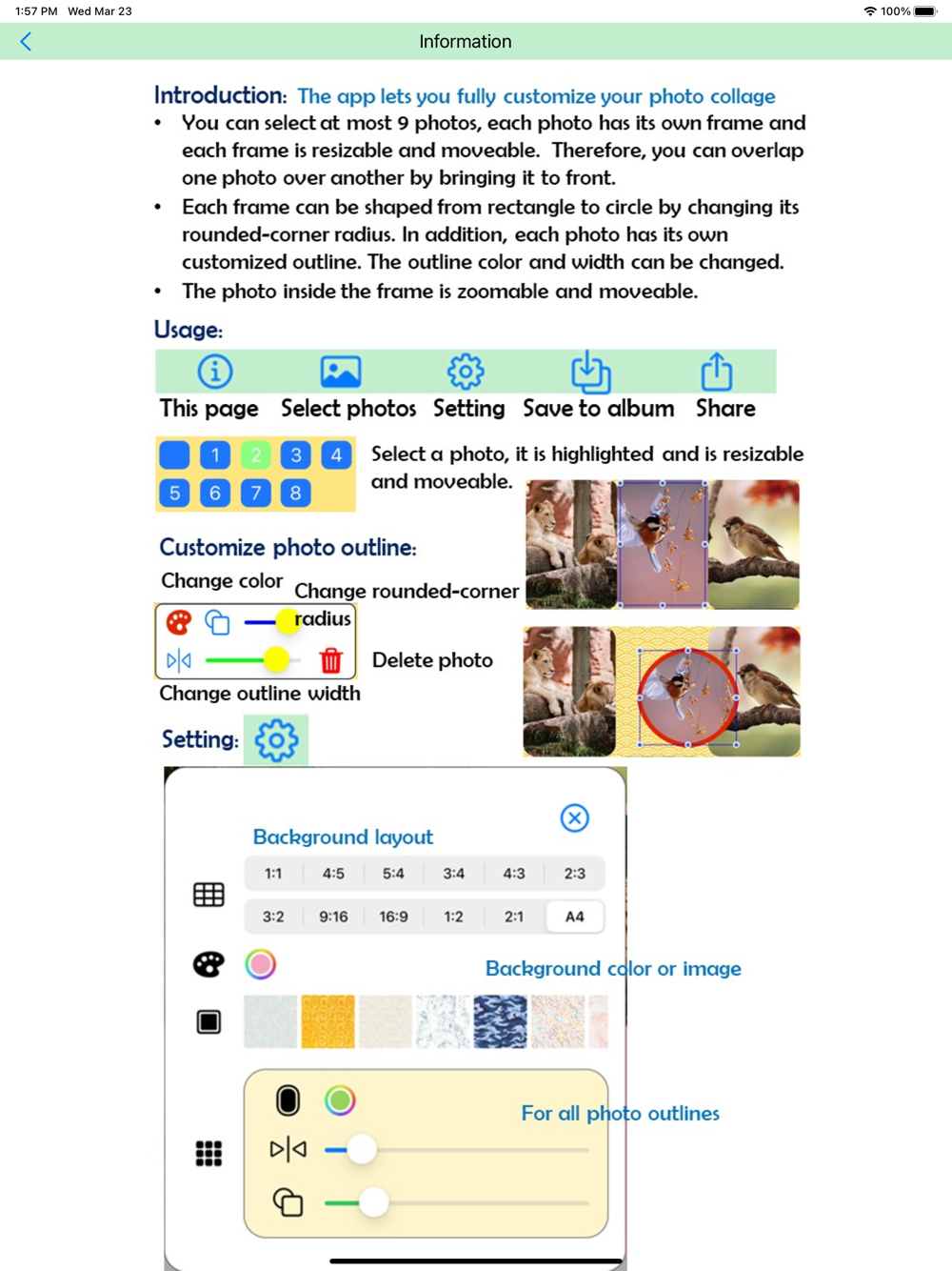 In addition, each photo has its own customized outline. The outline color and width can be changed.