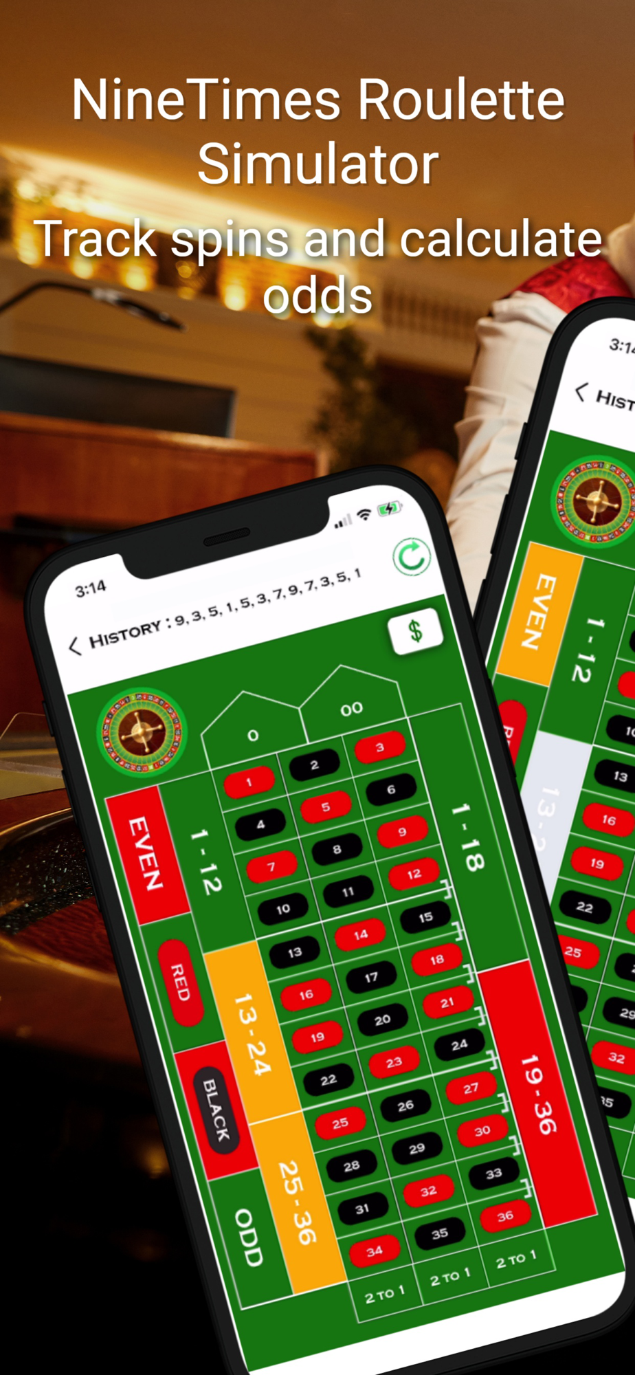 Use the Nine Times Roulette app to sharpen your Roulette instincts by recording your spins then see the app reveal your best bet probabilities. Learn the rules and strategy of Roulette through practice bets where you can see the probabilities unfold as the game goes on.