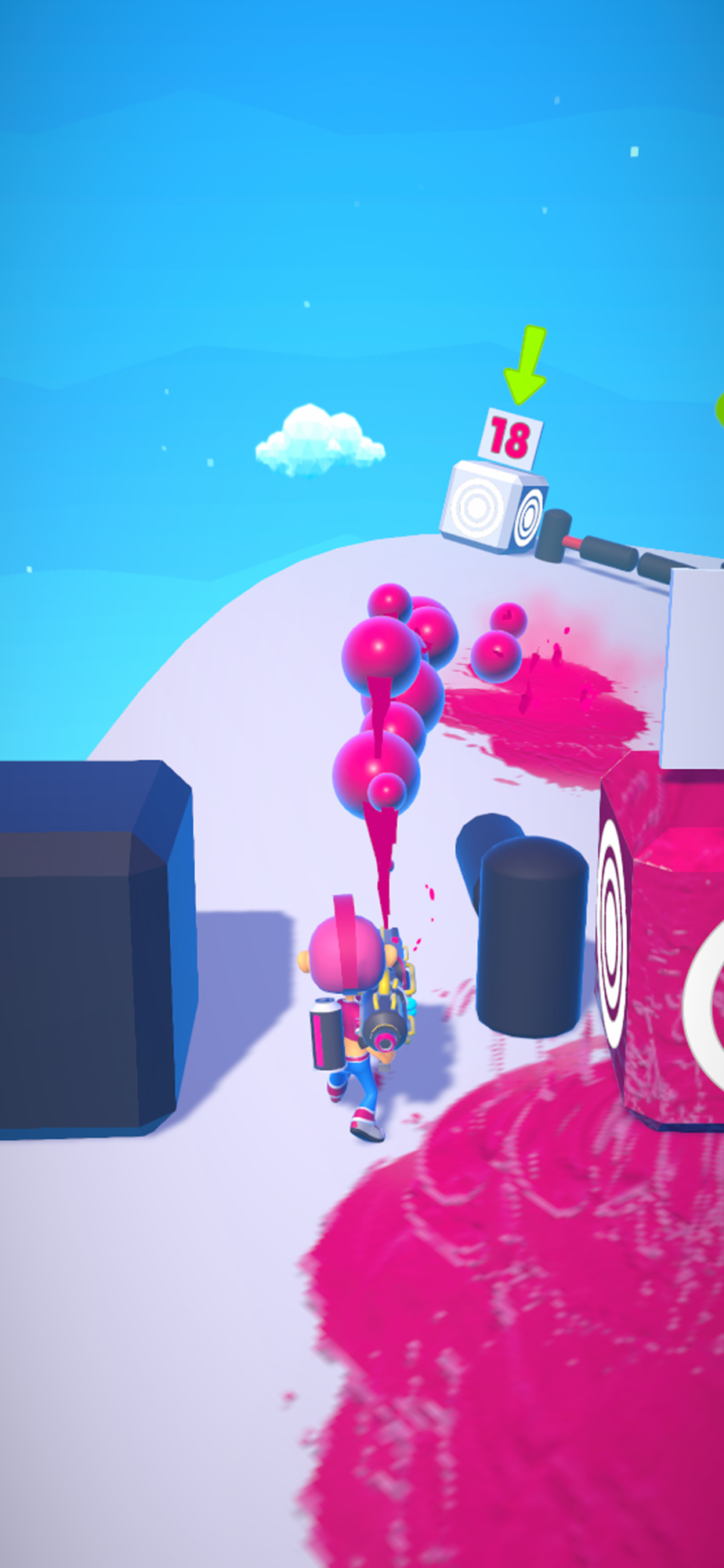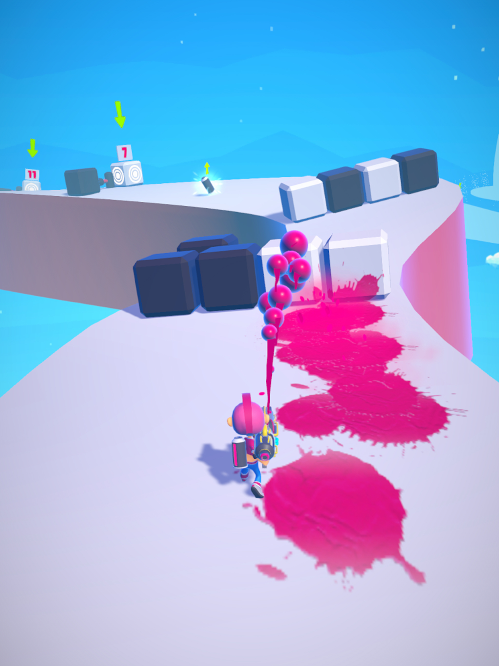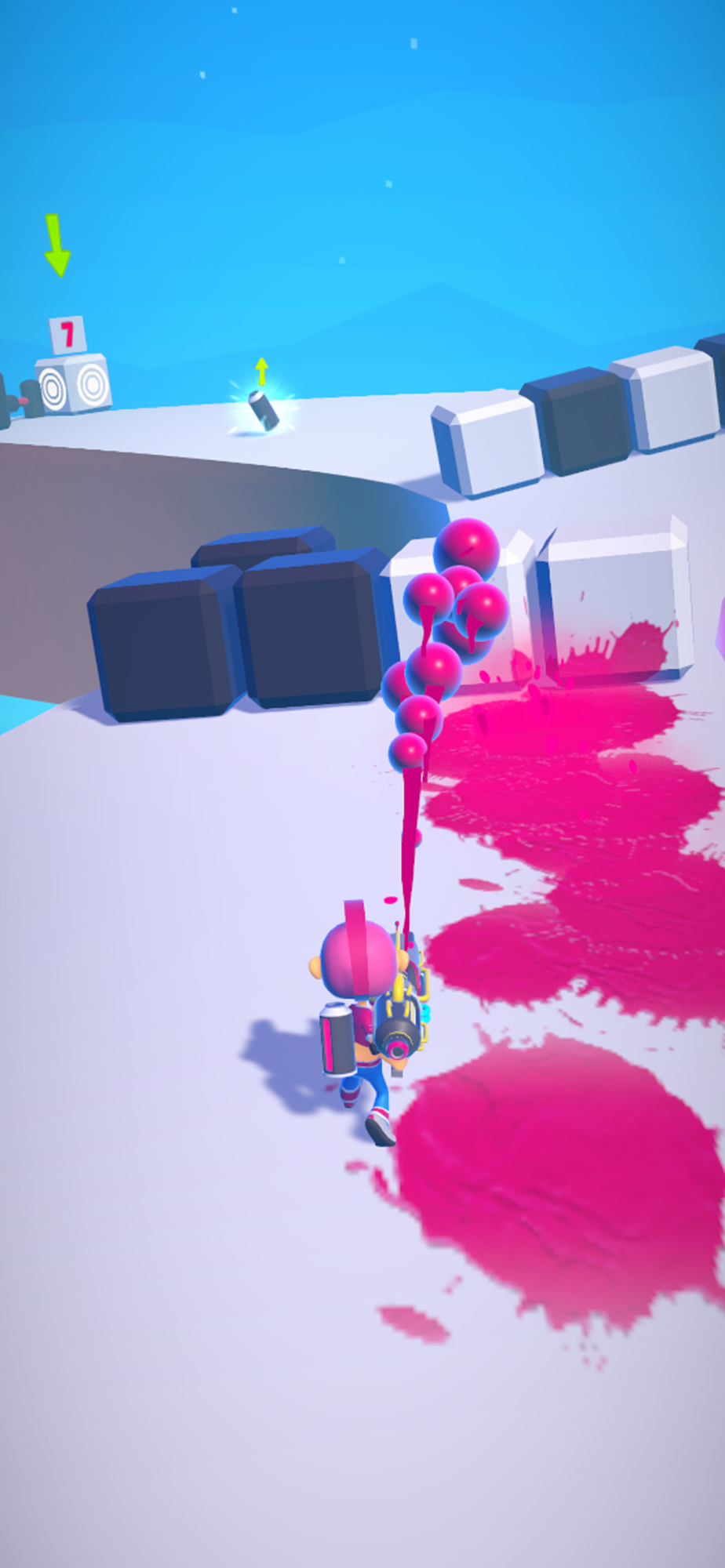 Setty dodges obstacles by advancing with her paint gun