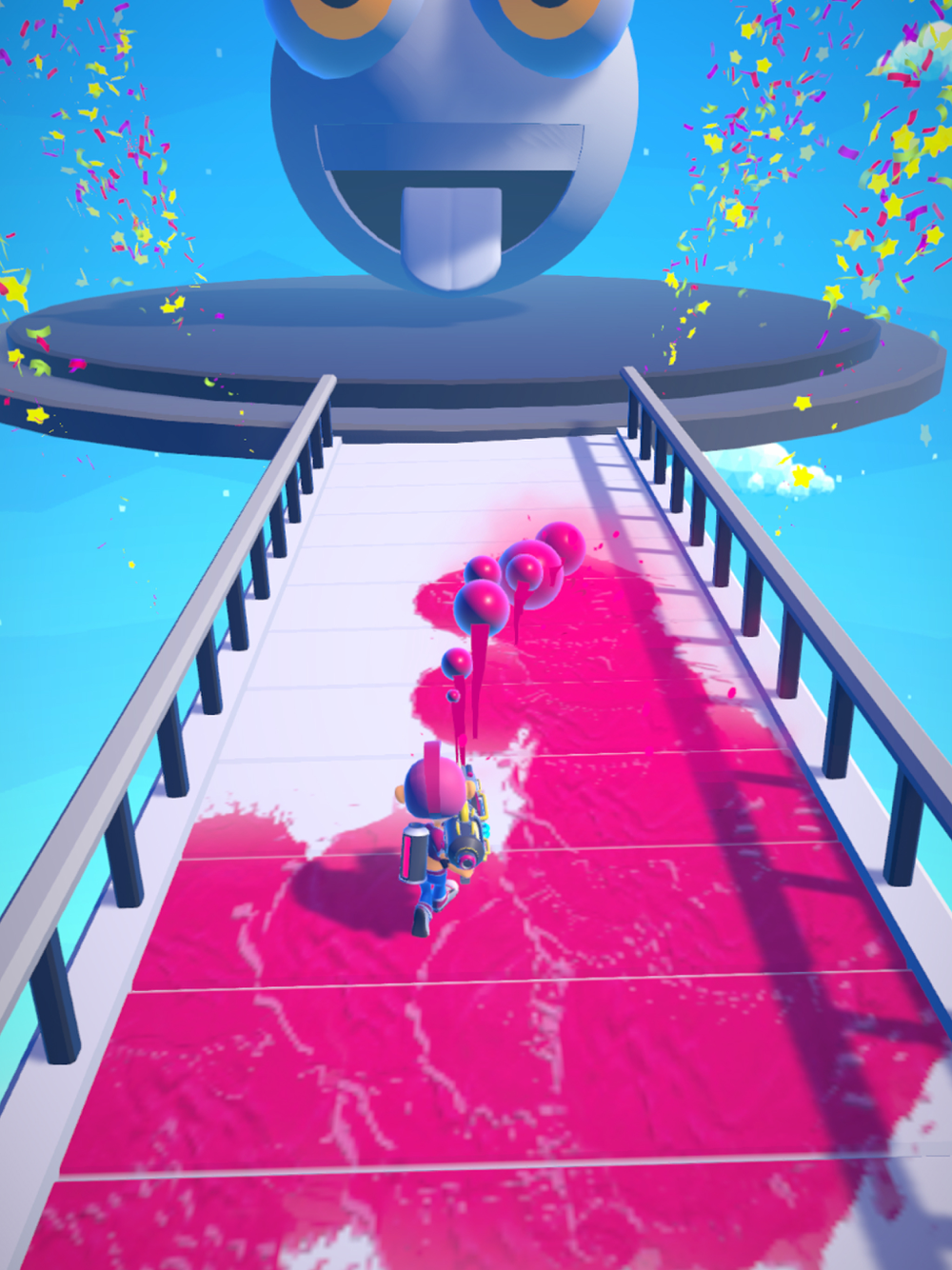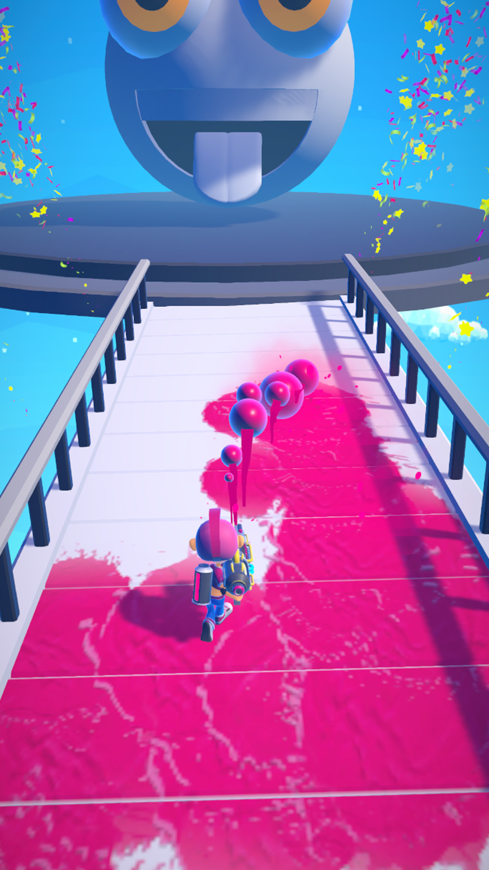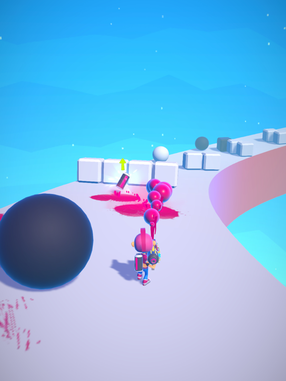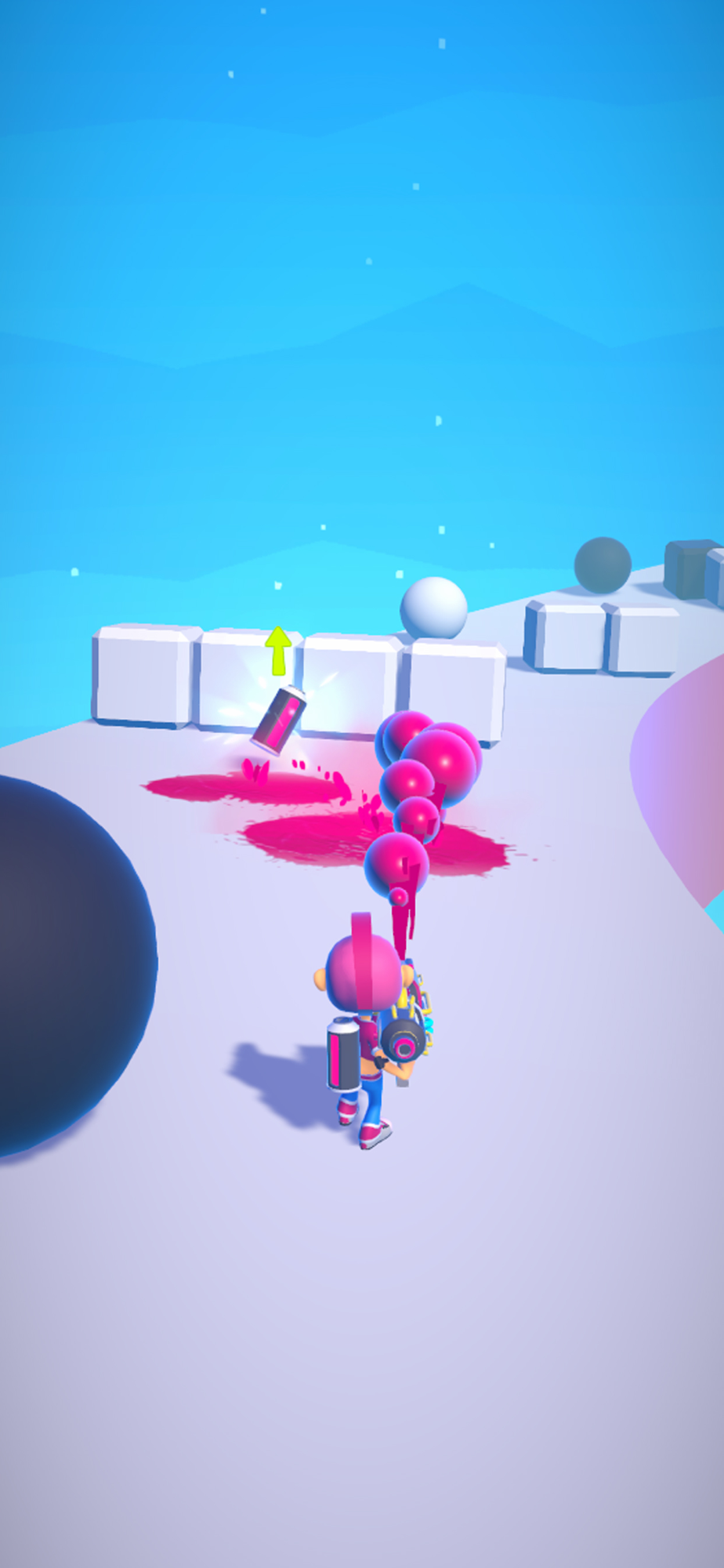 Setty dodges obstacles by advancing with her paint gun