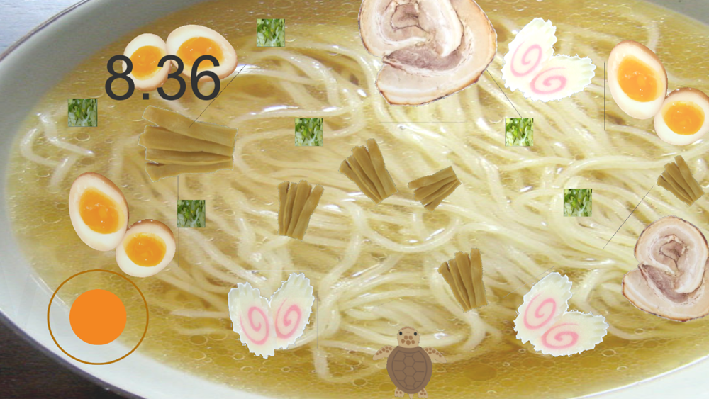 ラーメンの中を泳ぎ制限時間内により多くの具をゲットせよ!