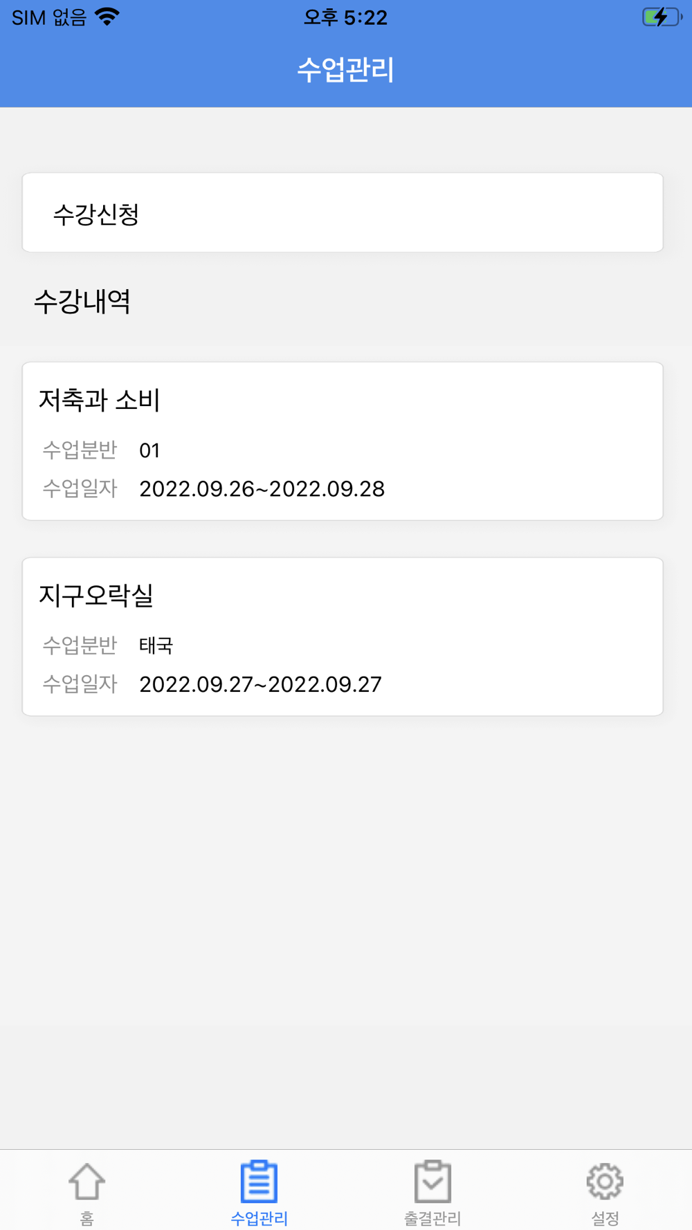 교수자의 수업을 등록하고 출석체크를 할 수 있습니다.