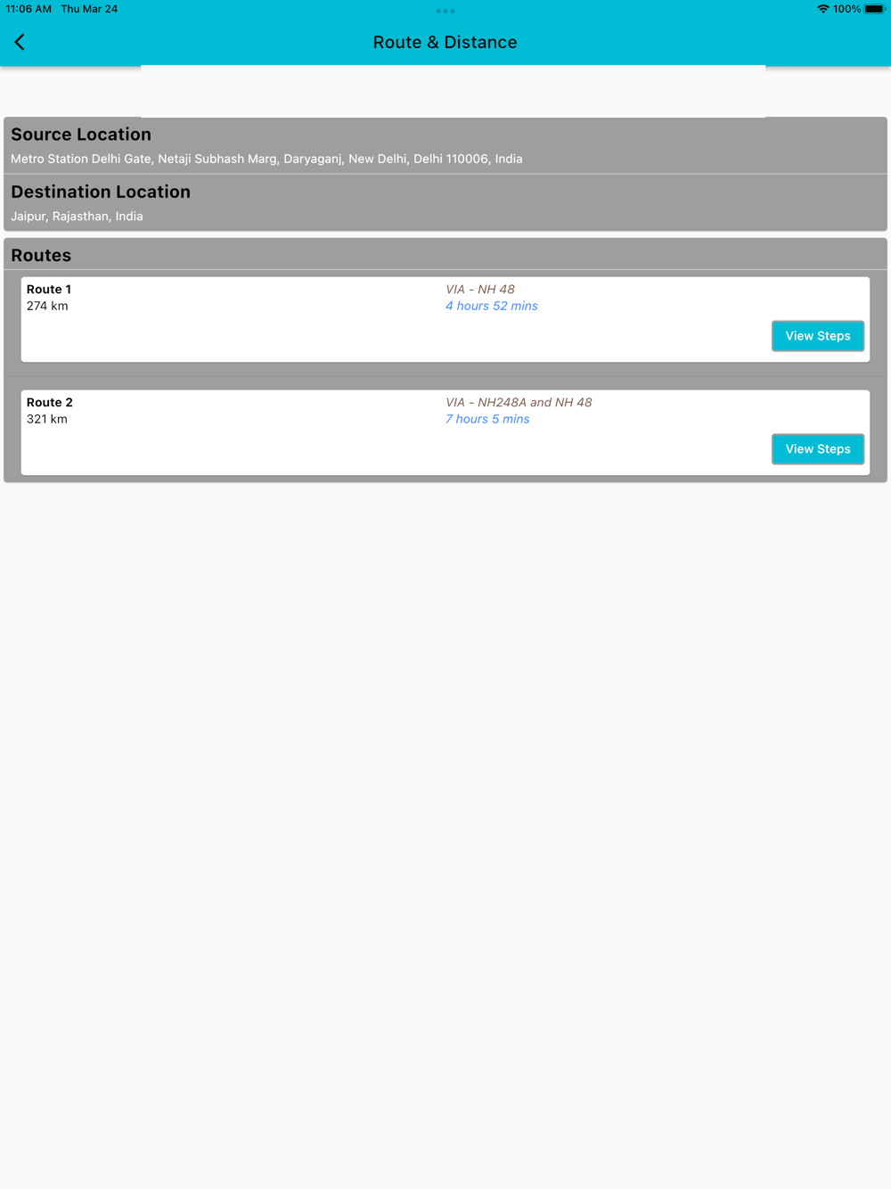 Easy to select source and destination locations from Map or by typing the name of place and selecting from suggested places list.