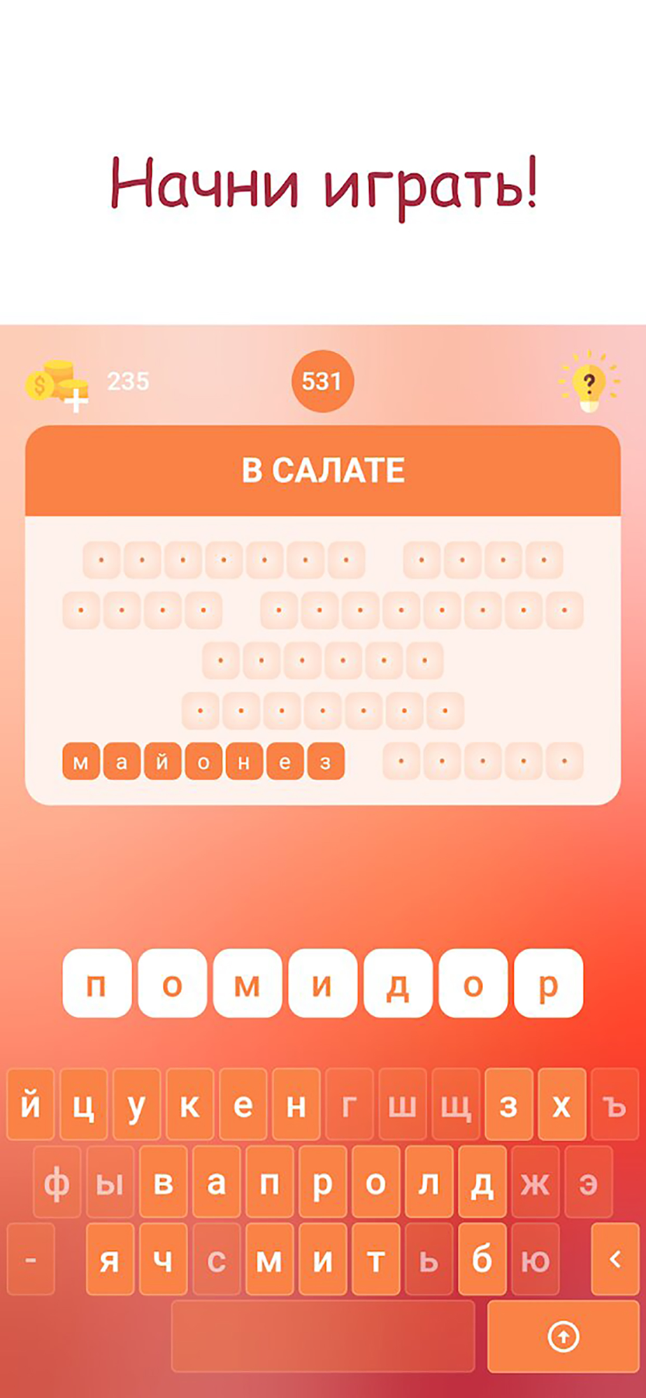 В некоторых случаях слова приходят в голову моментально, а иногда придется изрядно поломать голову, чтобы додуматься до правильного ответа, либо воспользоваться подсказкой, которая откроет одну букву во всех словах