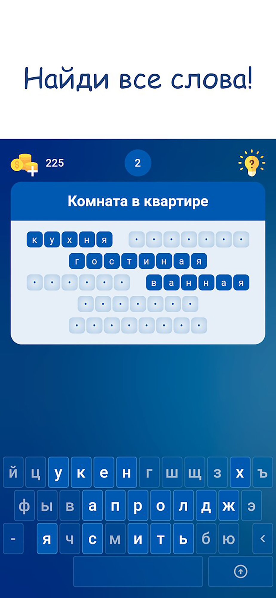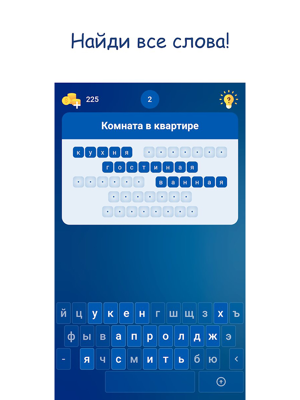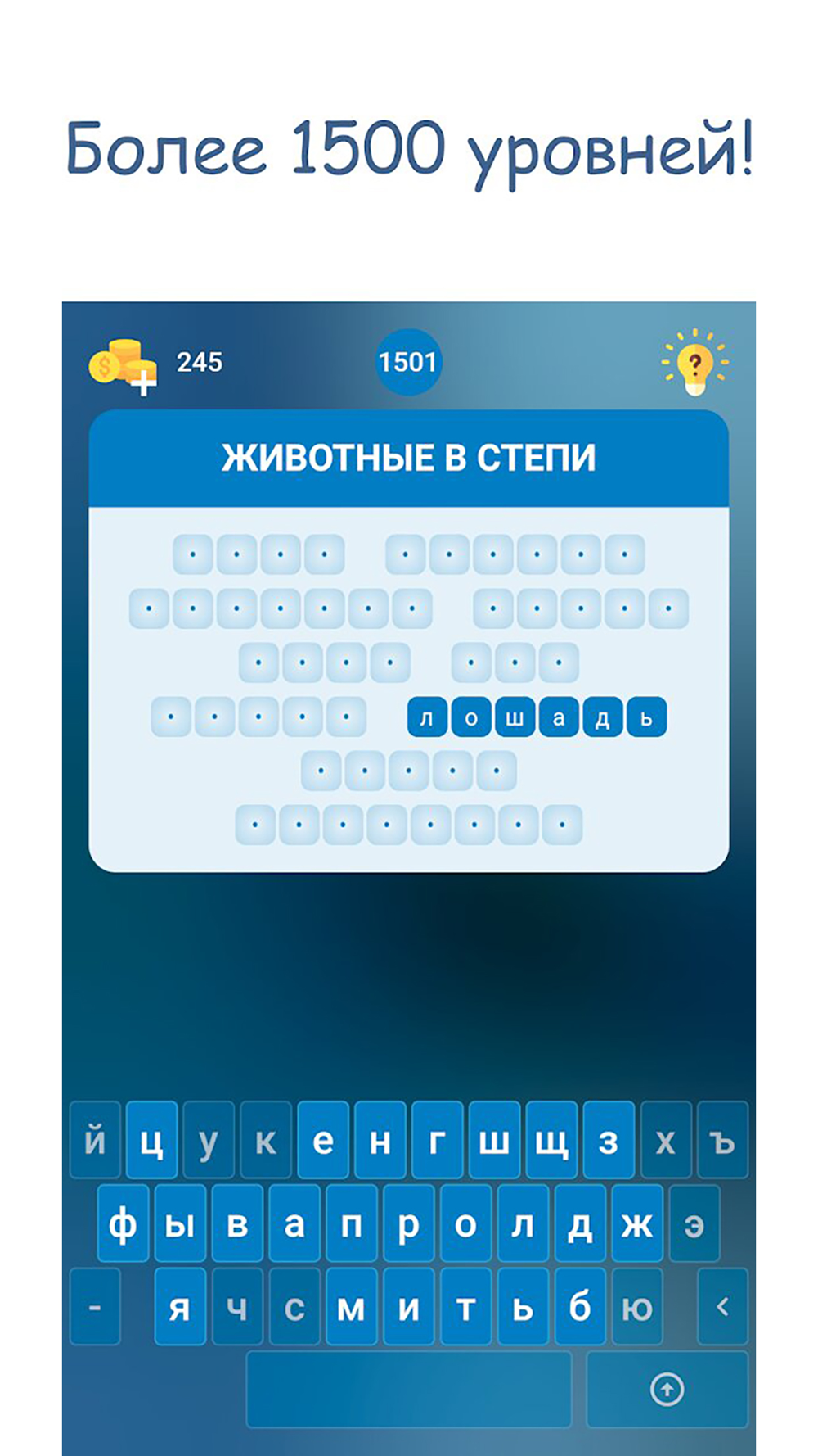 В игре содержатся более, чем 1500 увлекательных уровней, в каждом из которых необходимо отгадать все слова