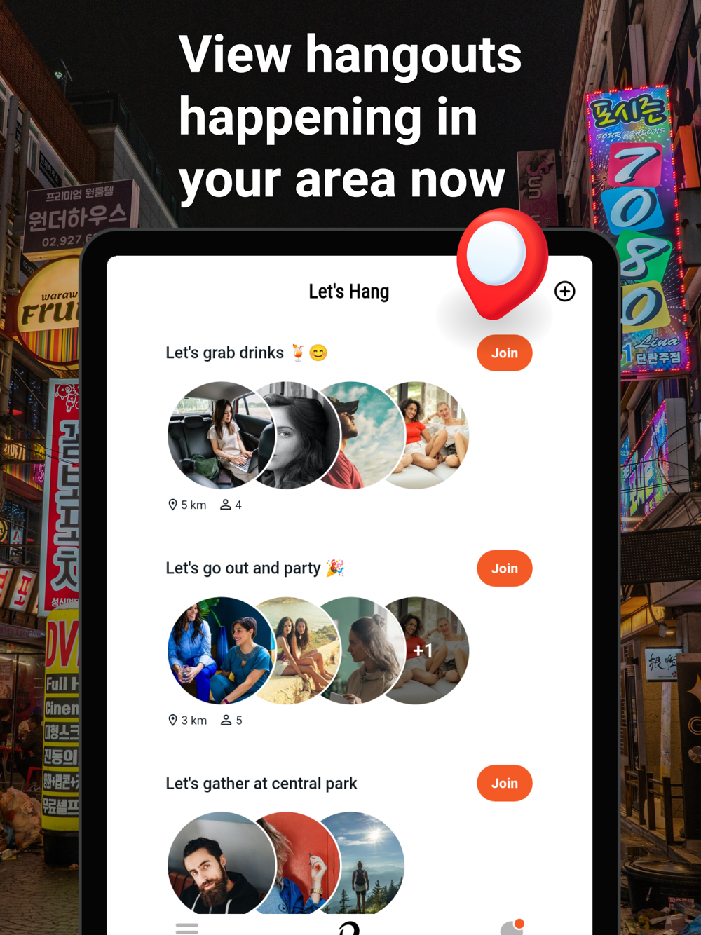 With Let's Hang, you'll have the chance to easily meet and connect with interesting people from all walks of life, expand your social circle, and enjoy spontaneous moments that you'll cherish forever.