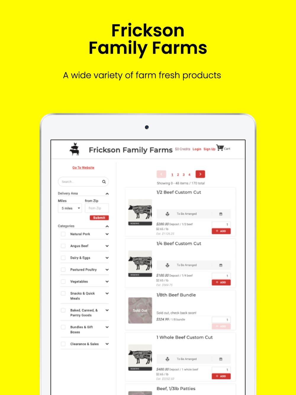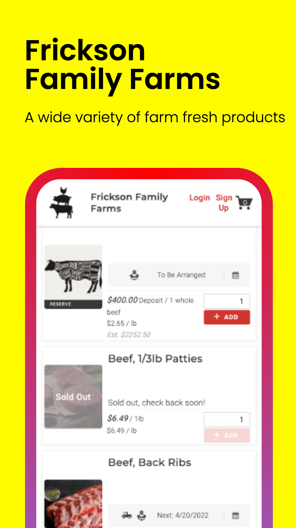 Local Family Farm, offering a wide variety of fresh, homegrown meats. Such as beef, pork, chicken, and eggs! Individual retail meat cuts. All meat is USDA inspected. Self service farm store, delivery service & shipping. Wholesale Services available.