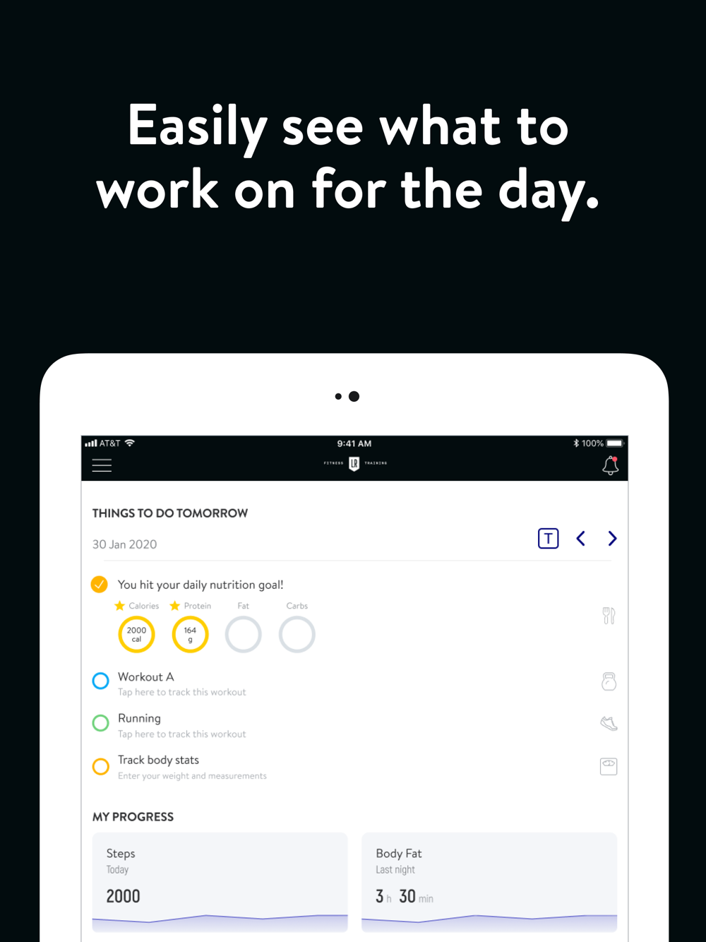 With the Locker Room App, you can start tracking your workouts and meals, measuring results, and achieving your fitness goals, all with the help of your personal trainer.