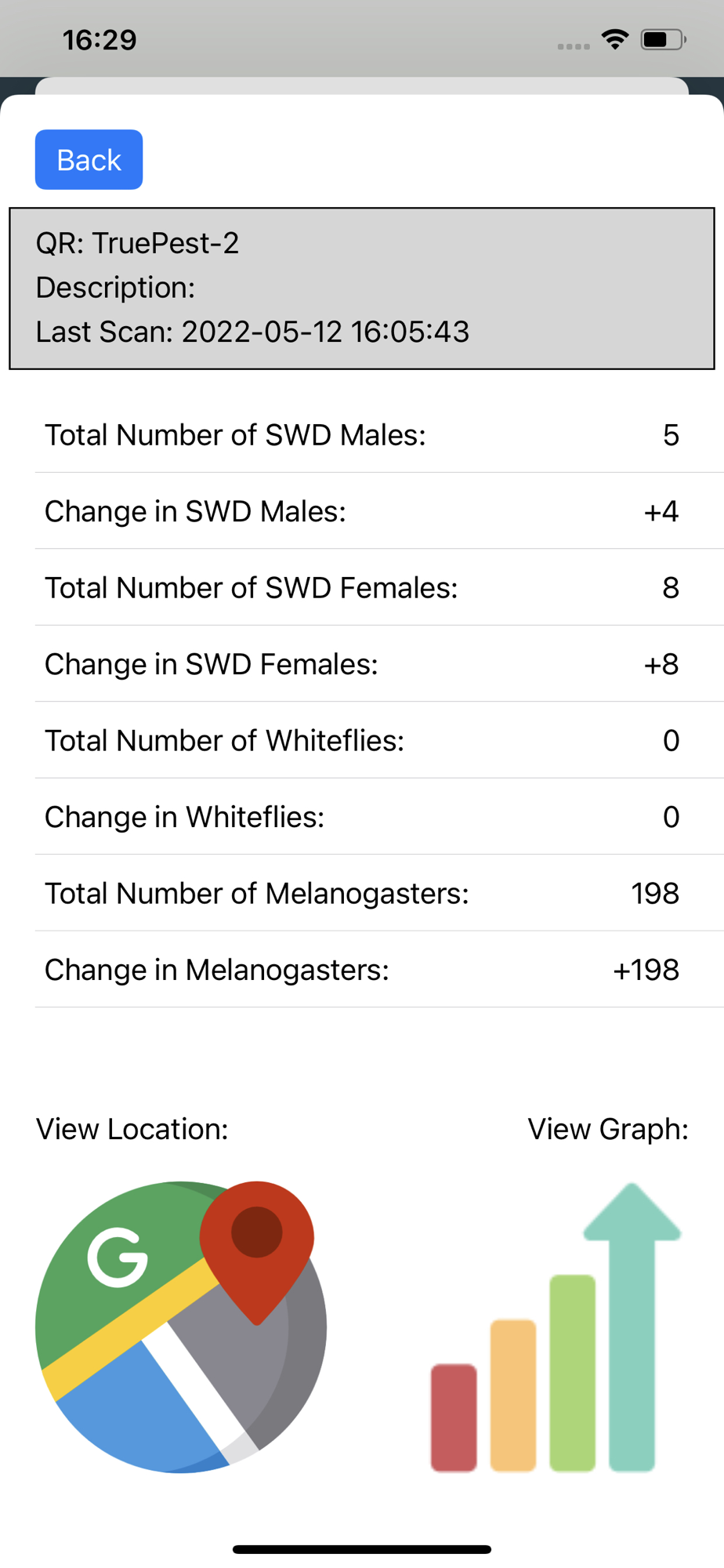 TruePest allows users to easily scan a sticky board and get the numbers of pests present without the need for manually counting. Instead TruePest uses an on-board AI system to do counting automatically for you. You can add and edit new stickyboard traps at your leisure using the app.