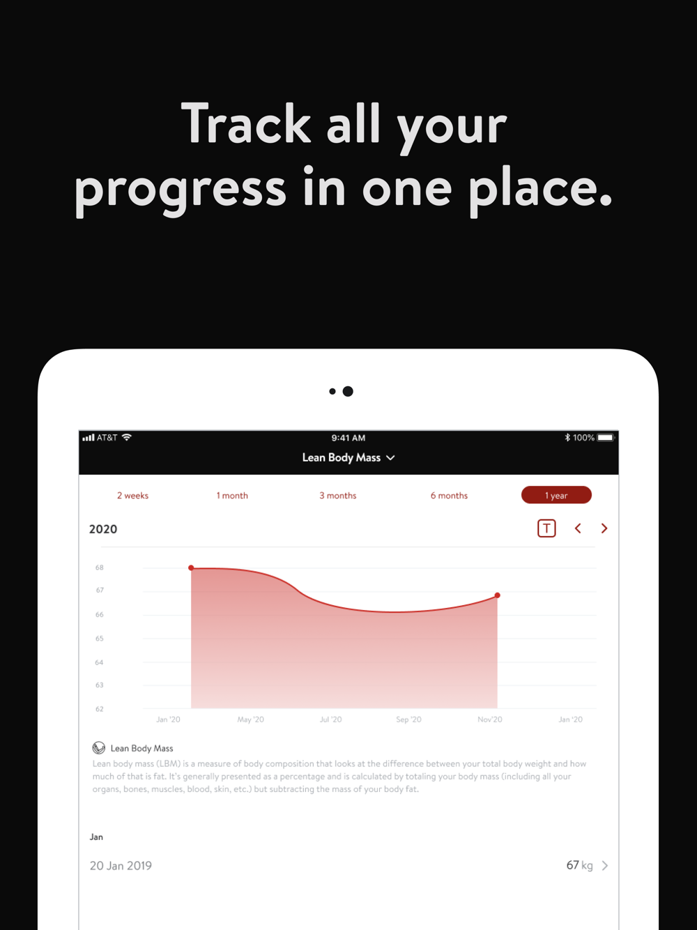 - Track body measurements and take progress photos