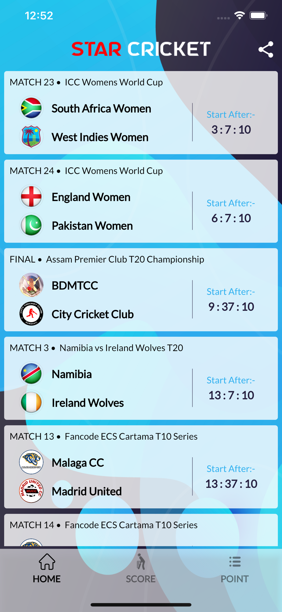 Star Cricket provides the fastest live score with ball by ball commentary of every cricket match around the world such as T20, ODI and Test matches.