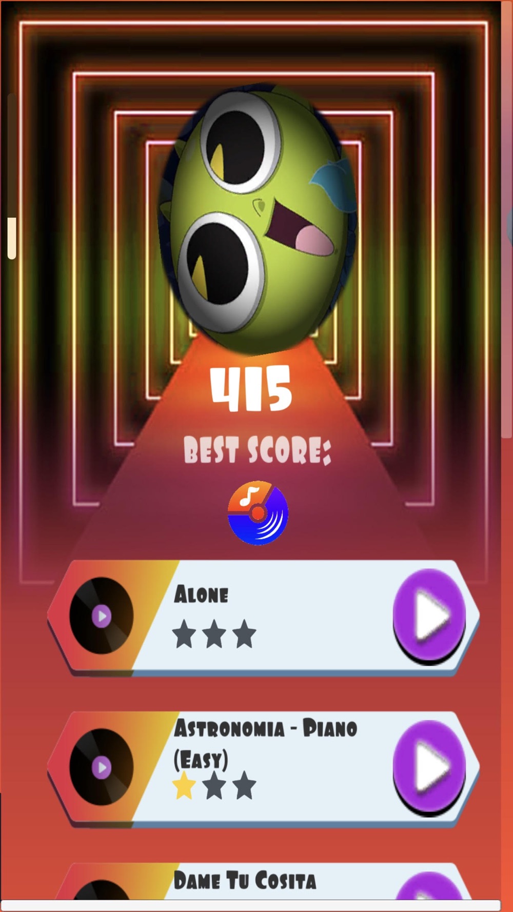 Songs Inside the hop tiles game: