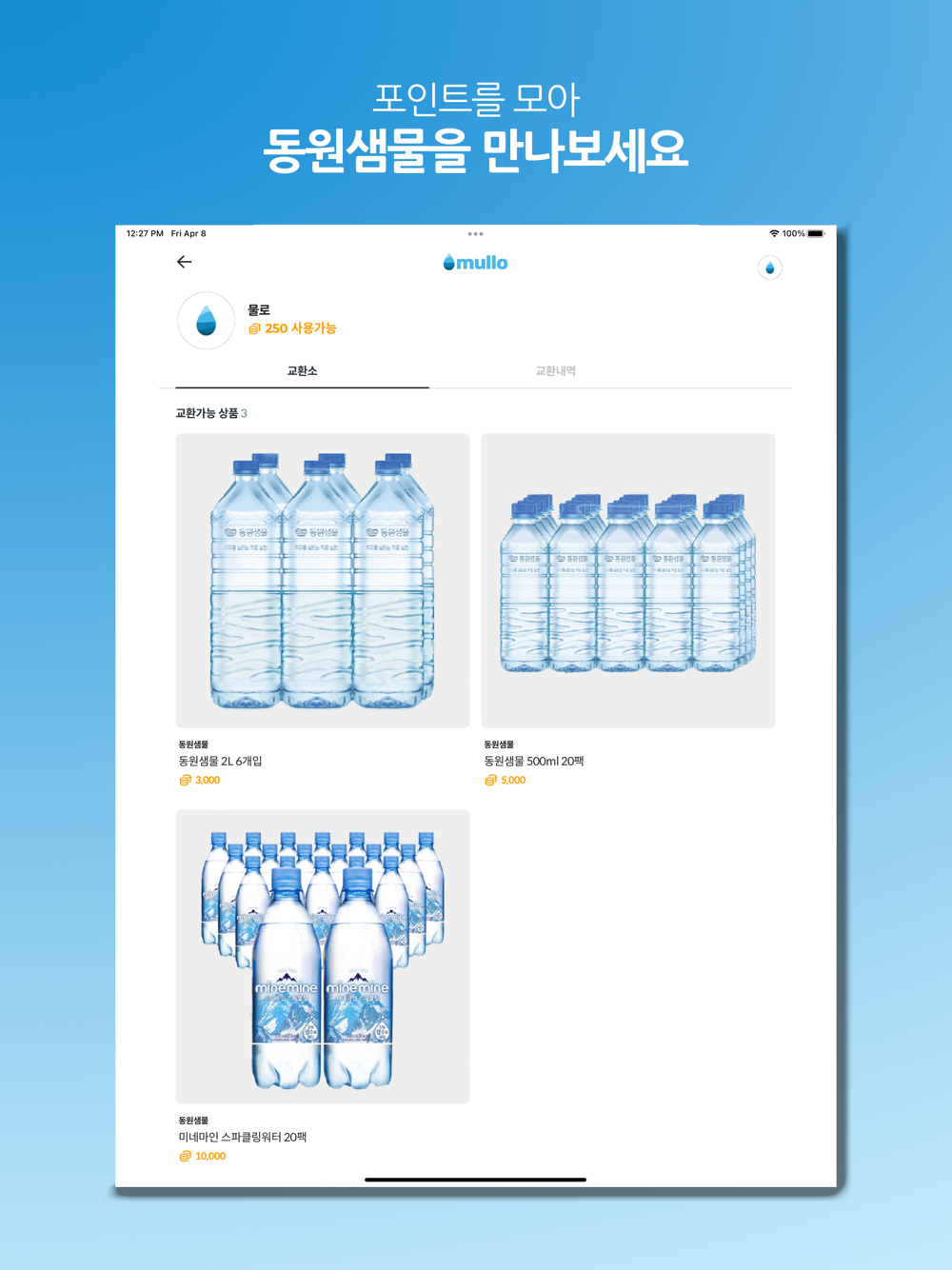 획득한 포인트로 동원샘물이 준비한 선물들을 받을 수 있어요!