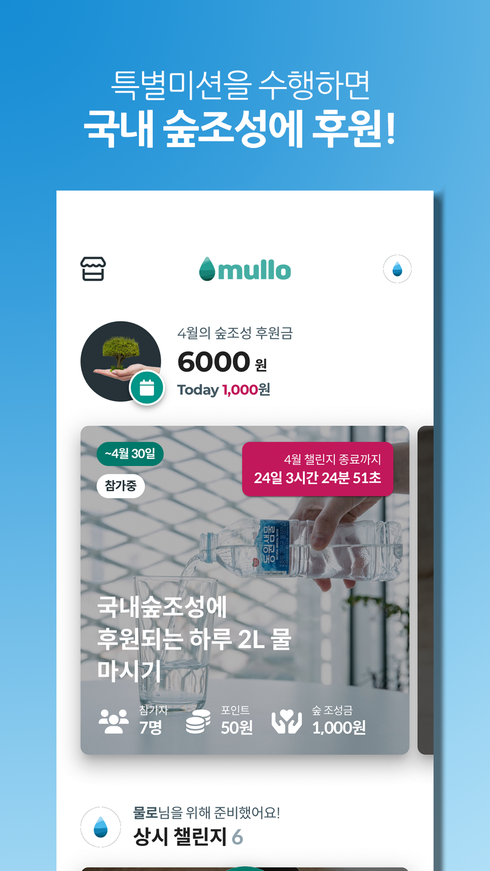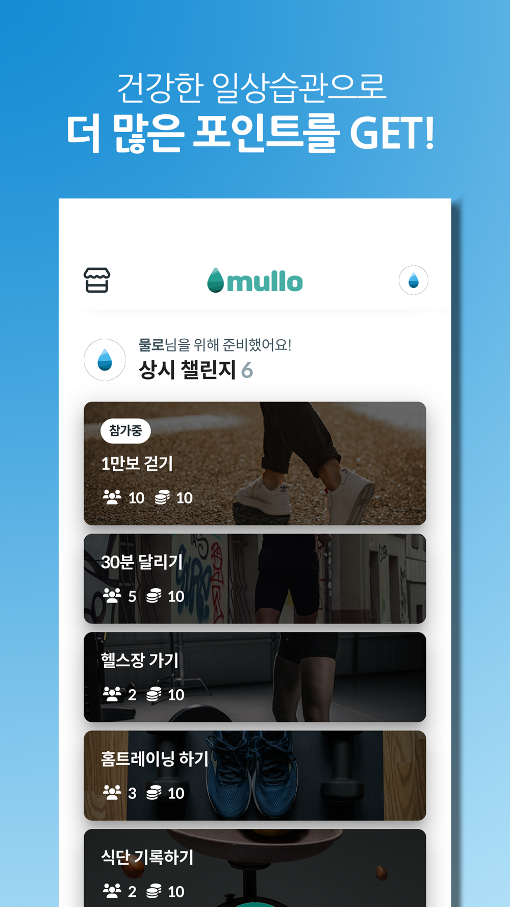 나의 건강한 일상이 포인트가 되는 챌린지 앱 ‘물로’