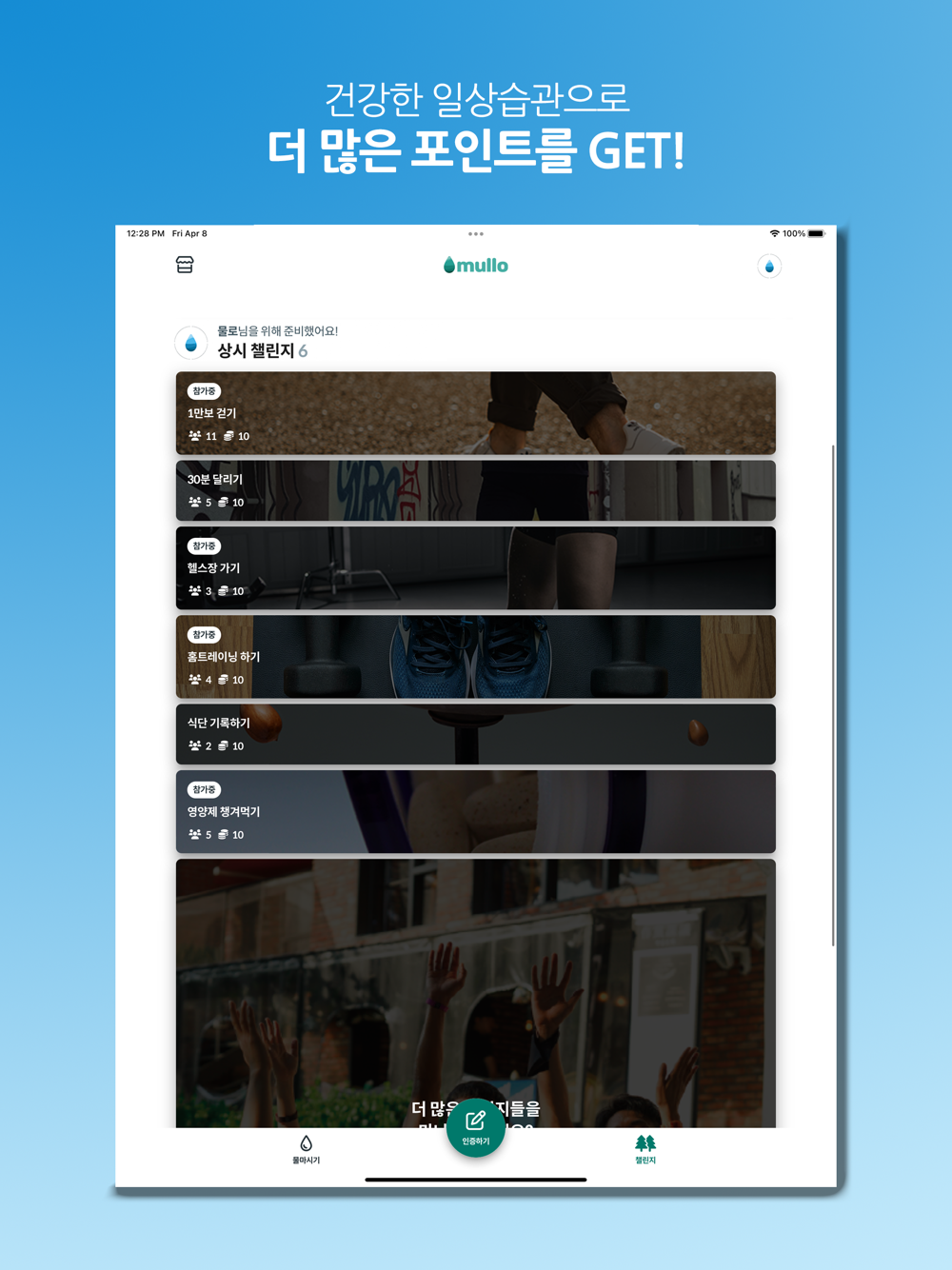 걷기, 달리기, 영양제 먹기, 헬스장 가기 등 다양한 챌린지에 참여하세요