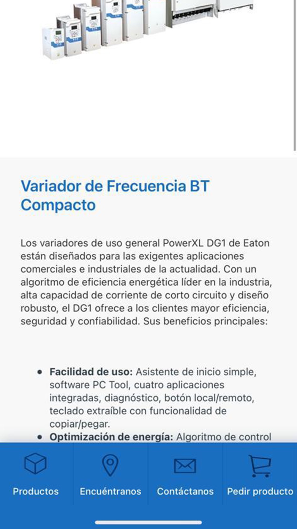 App desarrollada para Clientes de Eaton que permite revisar nuestro Catálogo de Soluciones. Además, cuenta con la posibilidad de solicitar productos en línea.