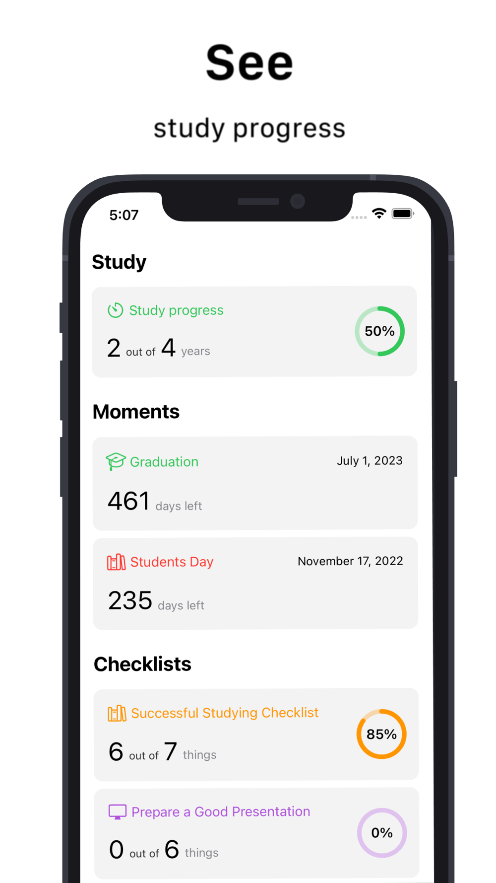 In addition to the challenge program, Study Tracker also helps you keep track of important dates and holidays, so you can stay organized and plan your study schedule accordingly. The app also includes checklists that help you learn new things, and keep your mind clear and focused.