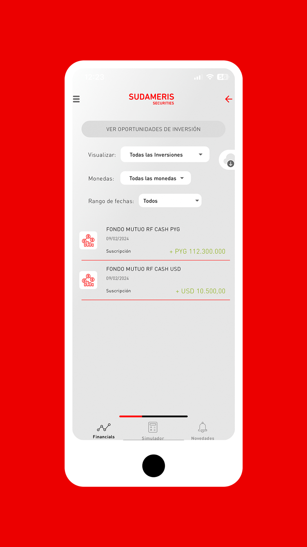 Sudameris Securities pone al alcance de tus manos la posibilidad de gestionar inversiones y dar seguimiento al crecimiento constante de tu portafolio.