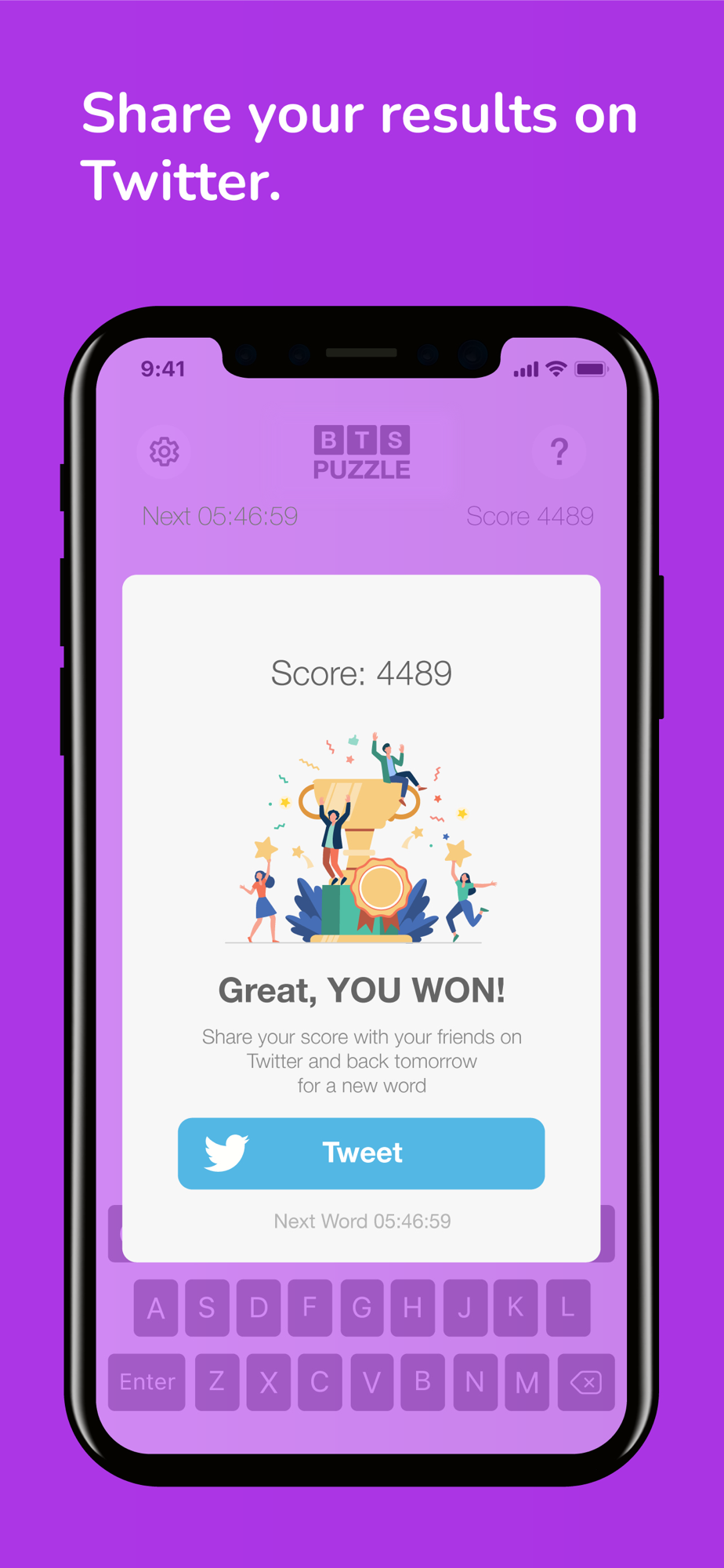 Daily free word challenge. All words are related to BTS and you have to discover the hidden word!