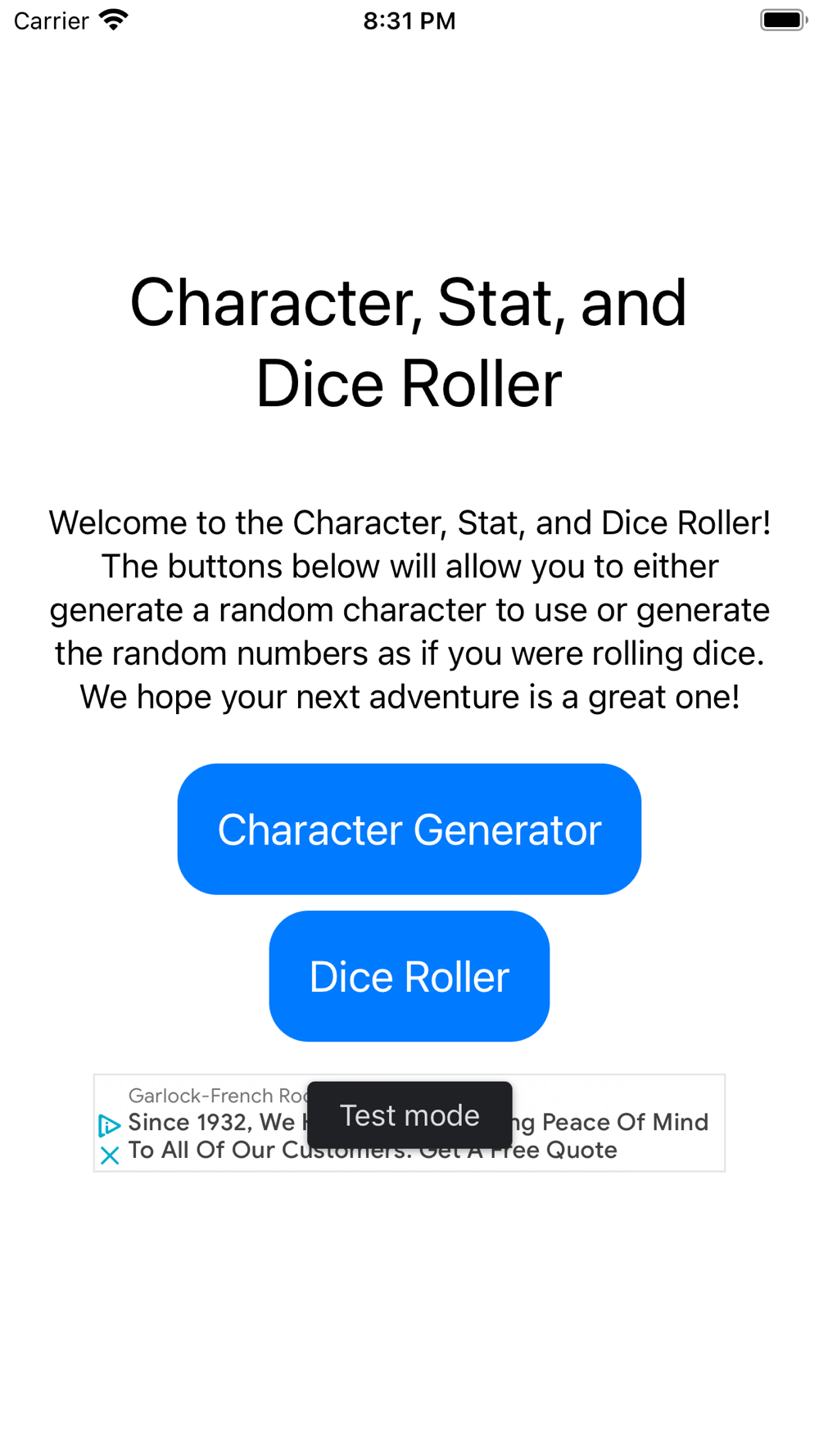 The Character, Stat, and Dice Roller will allow you to create a new PC to play in your RPG and also allow you to digitally roll for your actions.