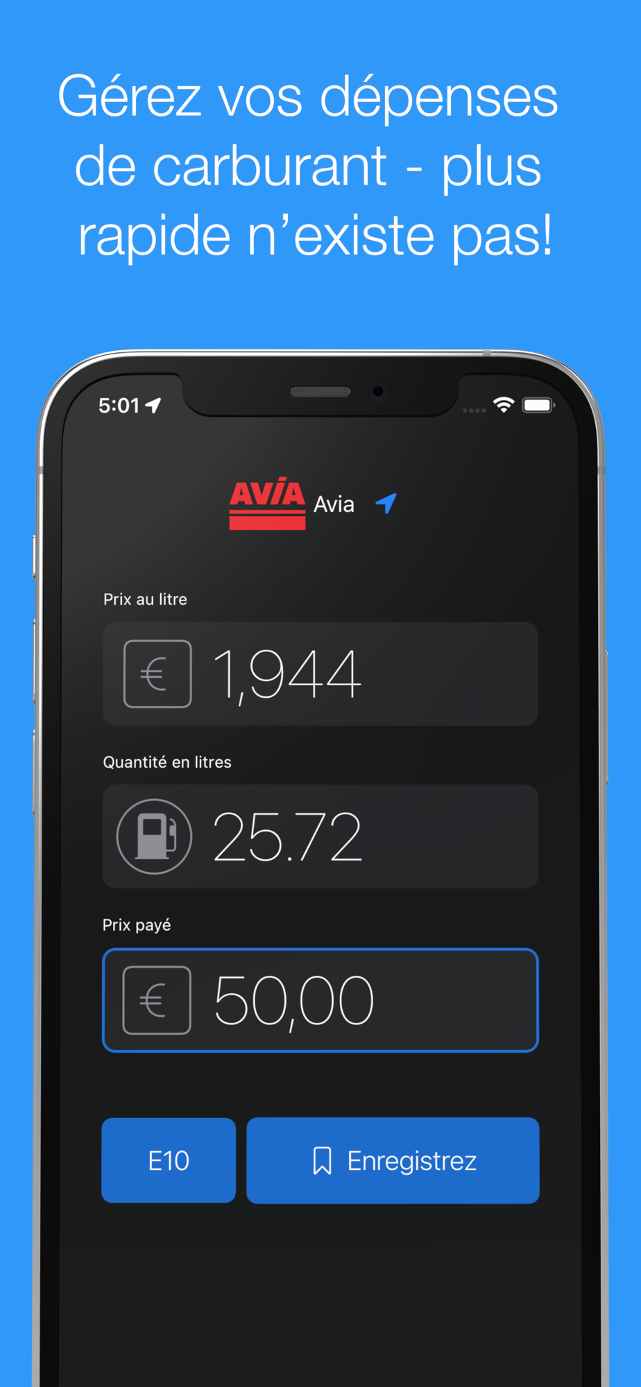 - Simplifiez l'enregistrement de vos passages aux stations essences. Vos données sont sauvées grâce à votre compte iCloud(Prix disponibles pour la France)