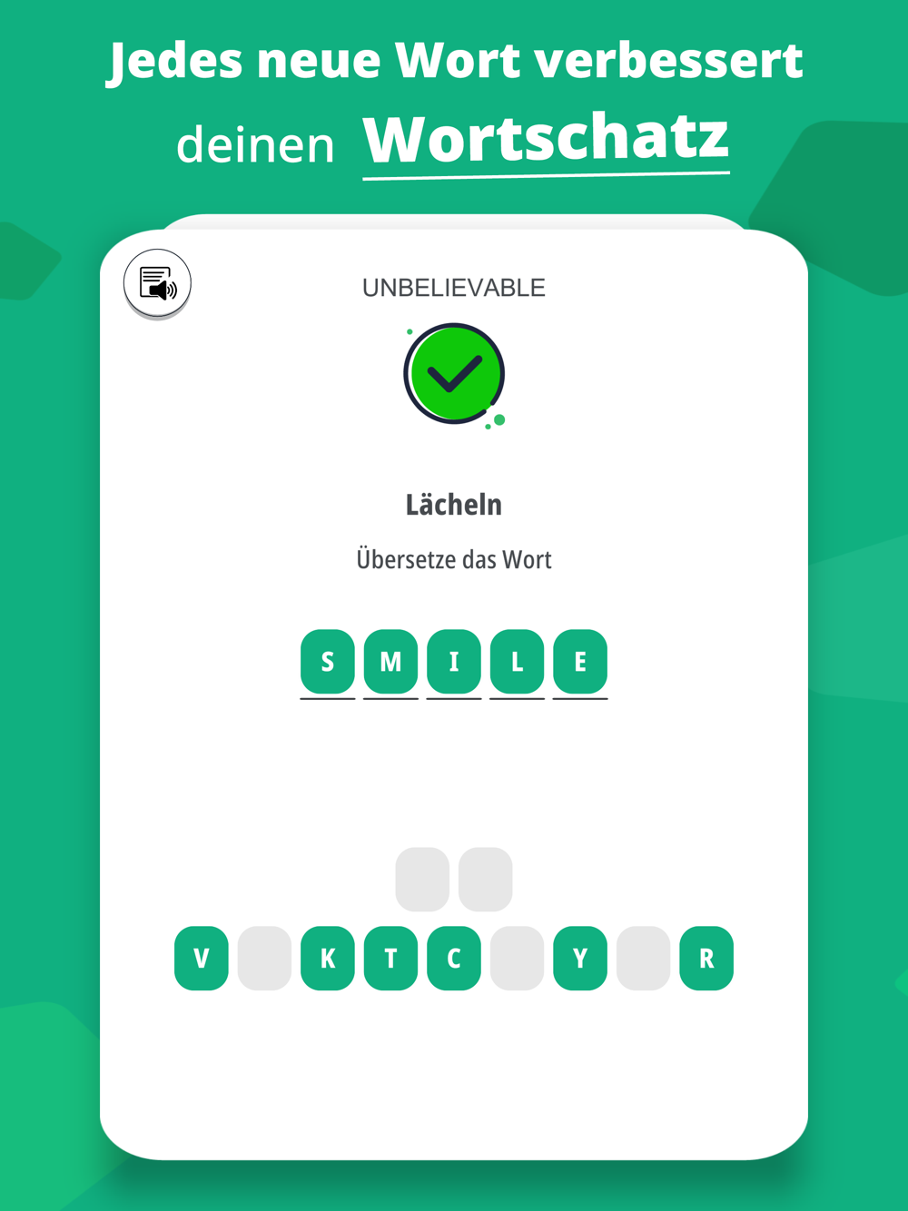 • Interaktives Lernen: Verabschiede dich von langweiligen Lernmethoden! Unsere App nutzt Spiele und interaktive Herausforderungen, um das Lernen spannend und einprägsam zu gestalten. So wird das Vokabeln lernen zu einem Erlebnis, das dich motiviert.