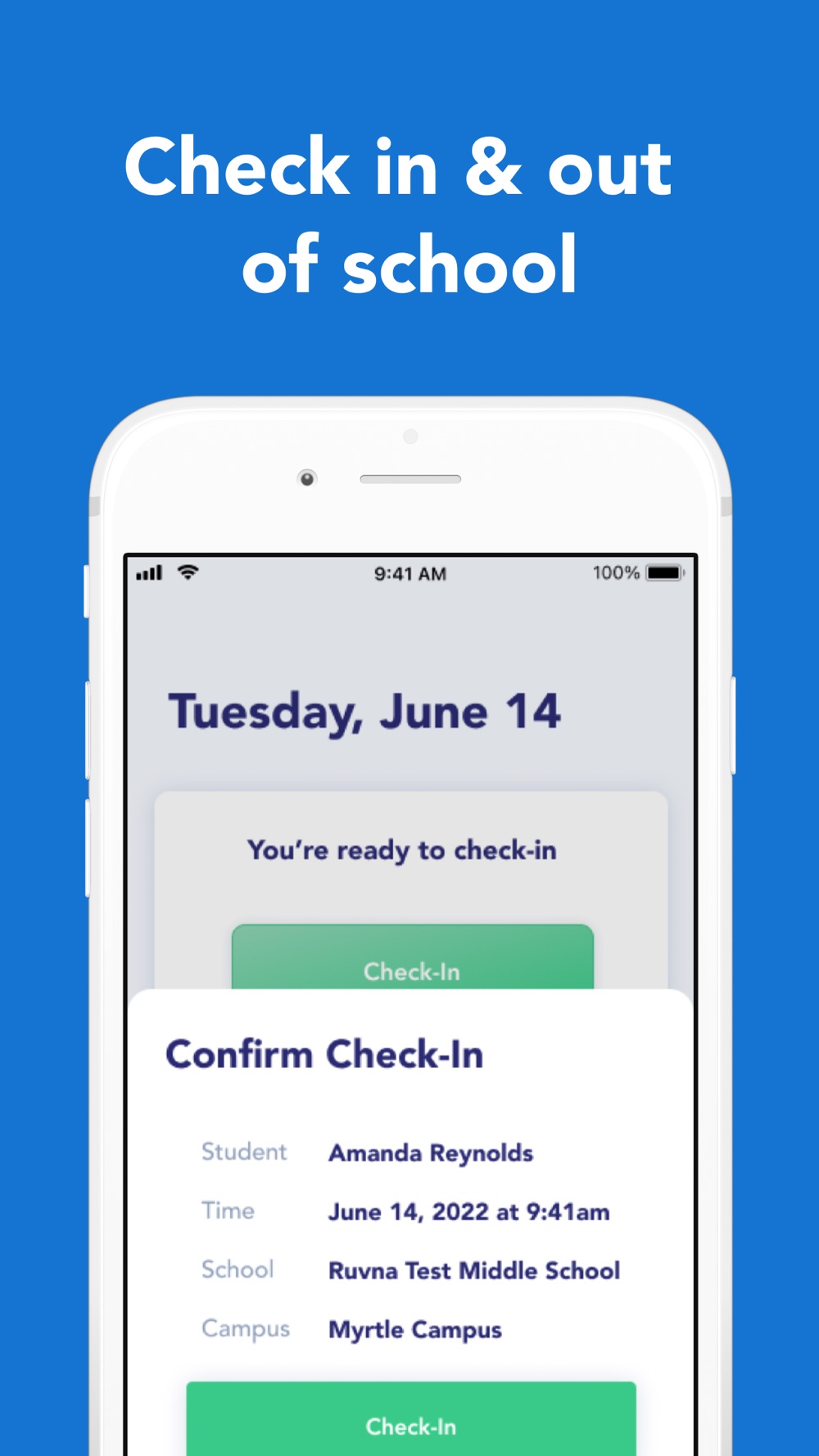 Use the Ruvna Student app to access your digital Student ID, check-in at school for attendance, and more.