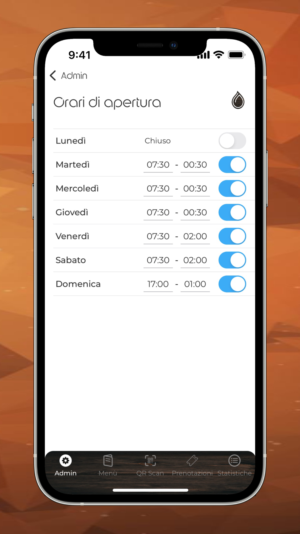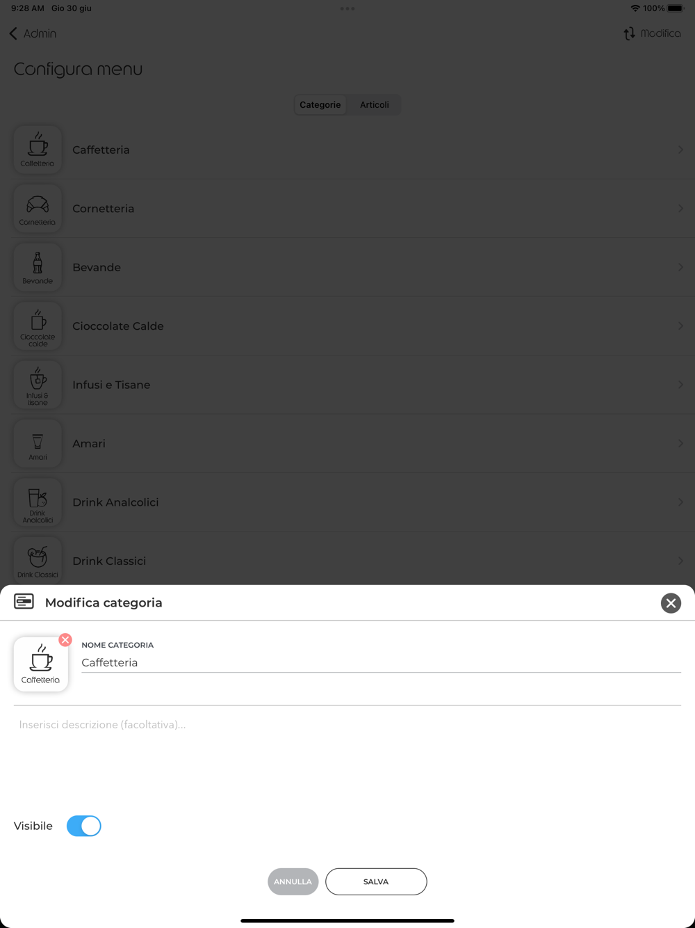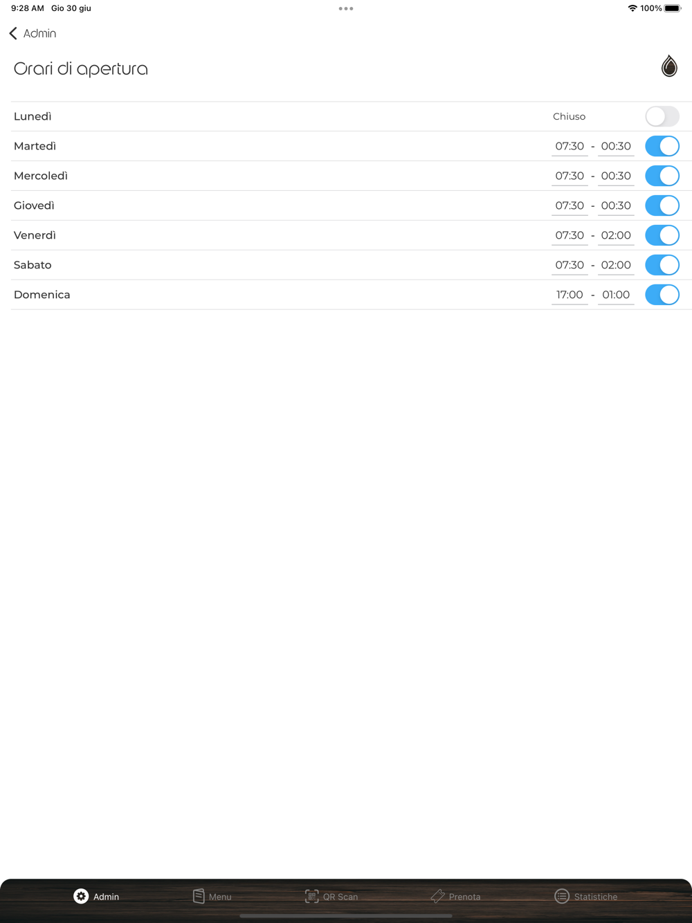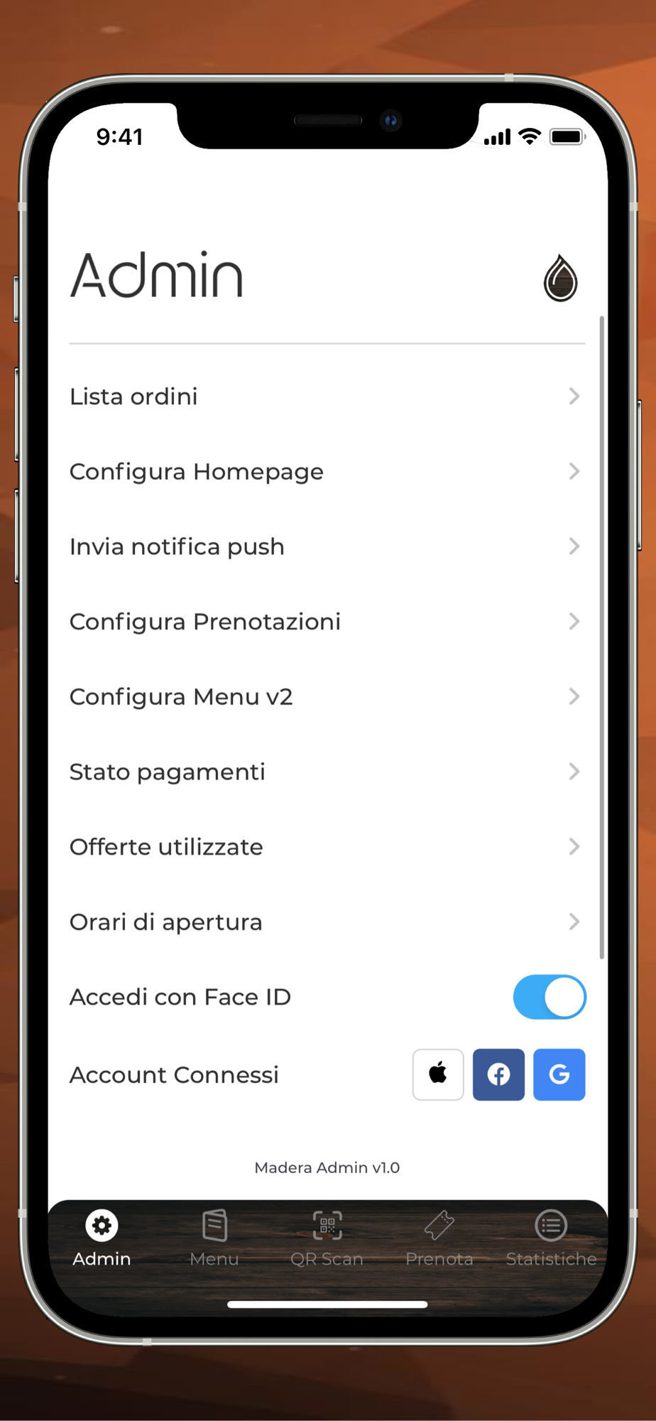 Il pannello da amministratore di Madera Lounge App consente agli amministratore di gestire il proprio locale.