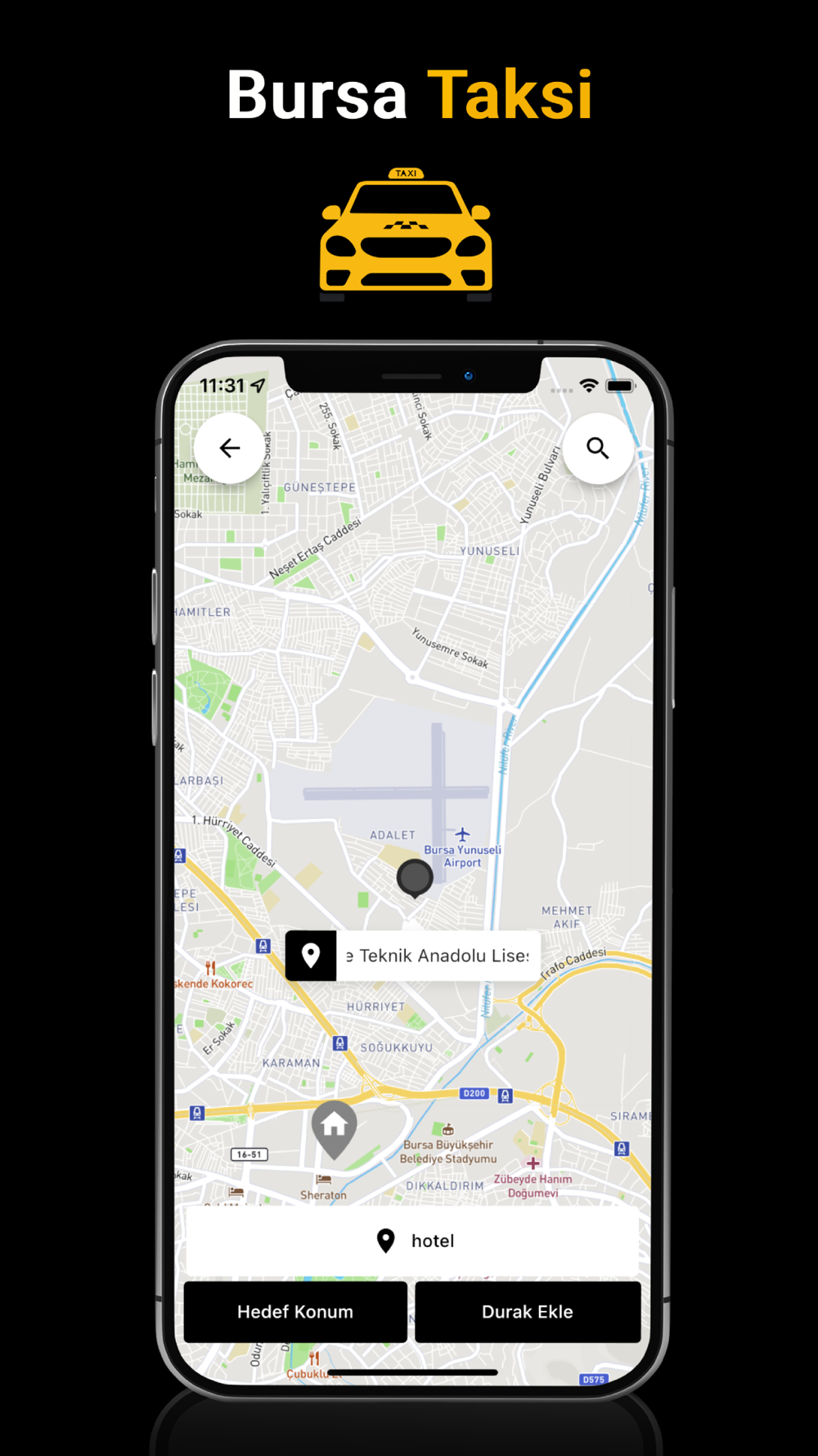 Bursa Taksi uygulaması ile en yakın taksi bi tıkla kapınızda.Üstelik ödeyeceğiniz ücreti, seyahat edeceğiniz aracın ve sürücüsünün bilgilerini önceden bilerek taksi kullanırsınız.
