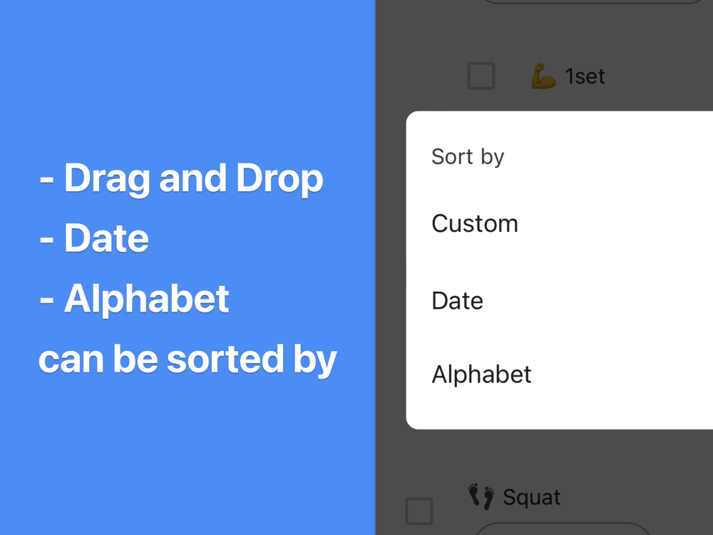 You can sort by "drag & drop", "date order", and "alphabetical order"!