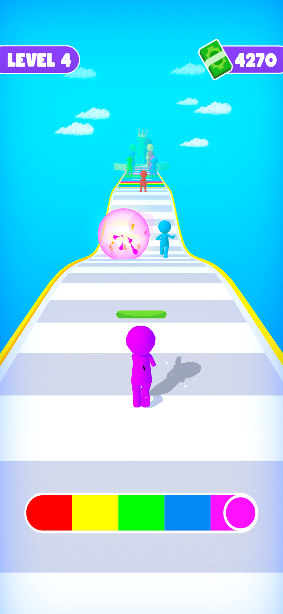 Get ready for the most colorful experience! Turn into the color of your enemies and shoot at them! Upgrade your weapons by shooting gates, take boosters and multiply your fun!