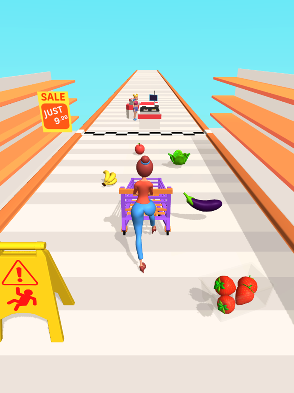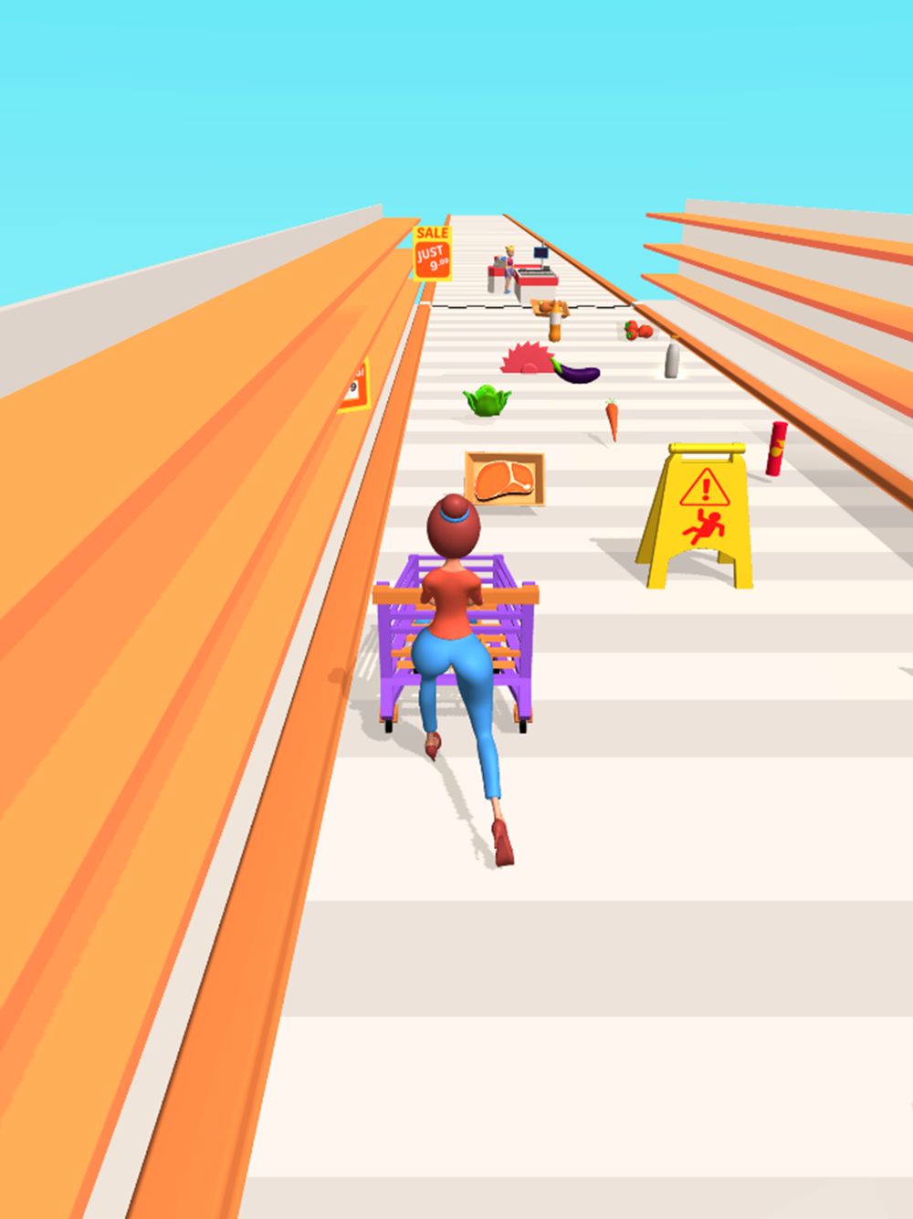Collect items to the shopping cart, sort items by categories and knock out the cashier!