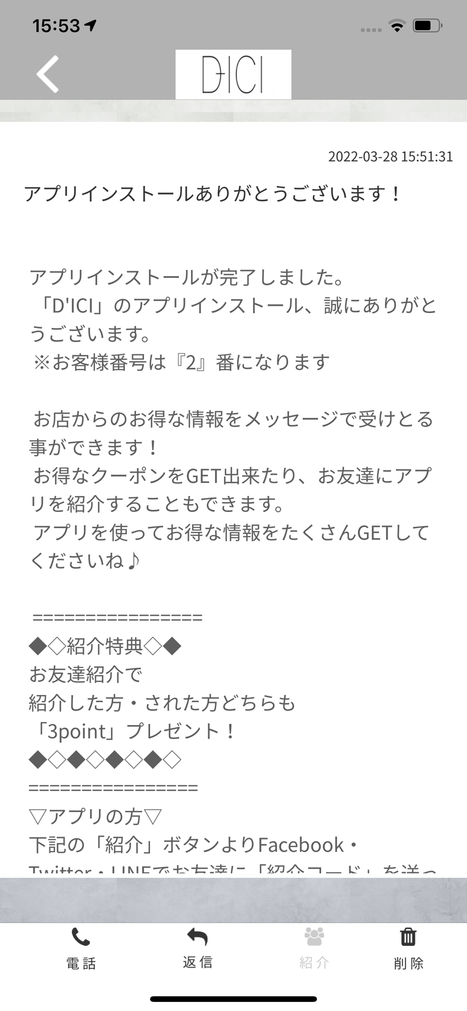 DICIのアプリをSNSを通じてお友達に紹介する事ができます。