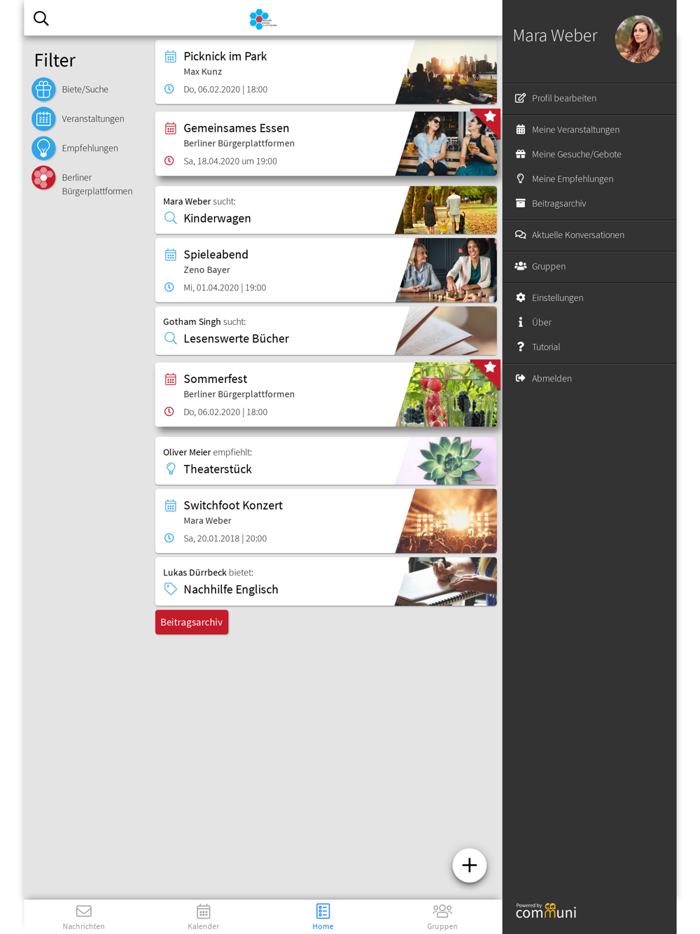 Das digitale Austauschforum für die Mitglieder und Mitgliedsgruppen der Berliner Bürgerplattformen. Alle Termine, Aktionen und Trainings im Überblick. Schneller und direkter Austausch zwischen den Mitgliedern und mit den Organizer*innen vom Smartphone, Tablet oder PC aus. #CommunityOrganizing