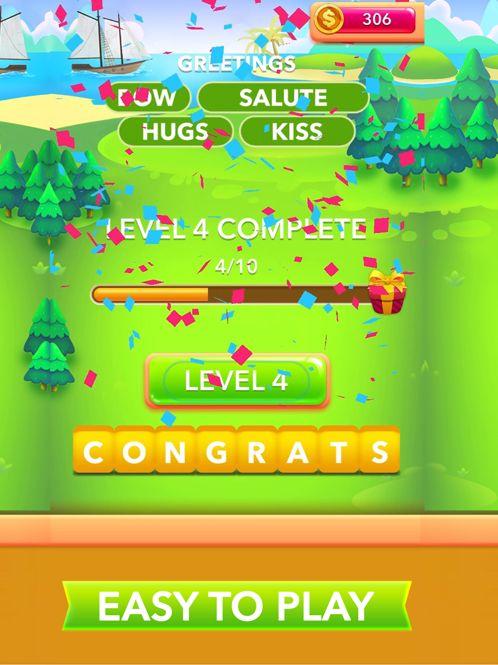 The goal is to search and find hidden words by using clue! With tons of levels available, you’ll enjoy the challenge of testing your vocabulary skills daily, while earning tons of coins!