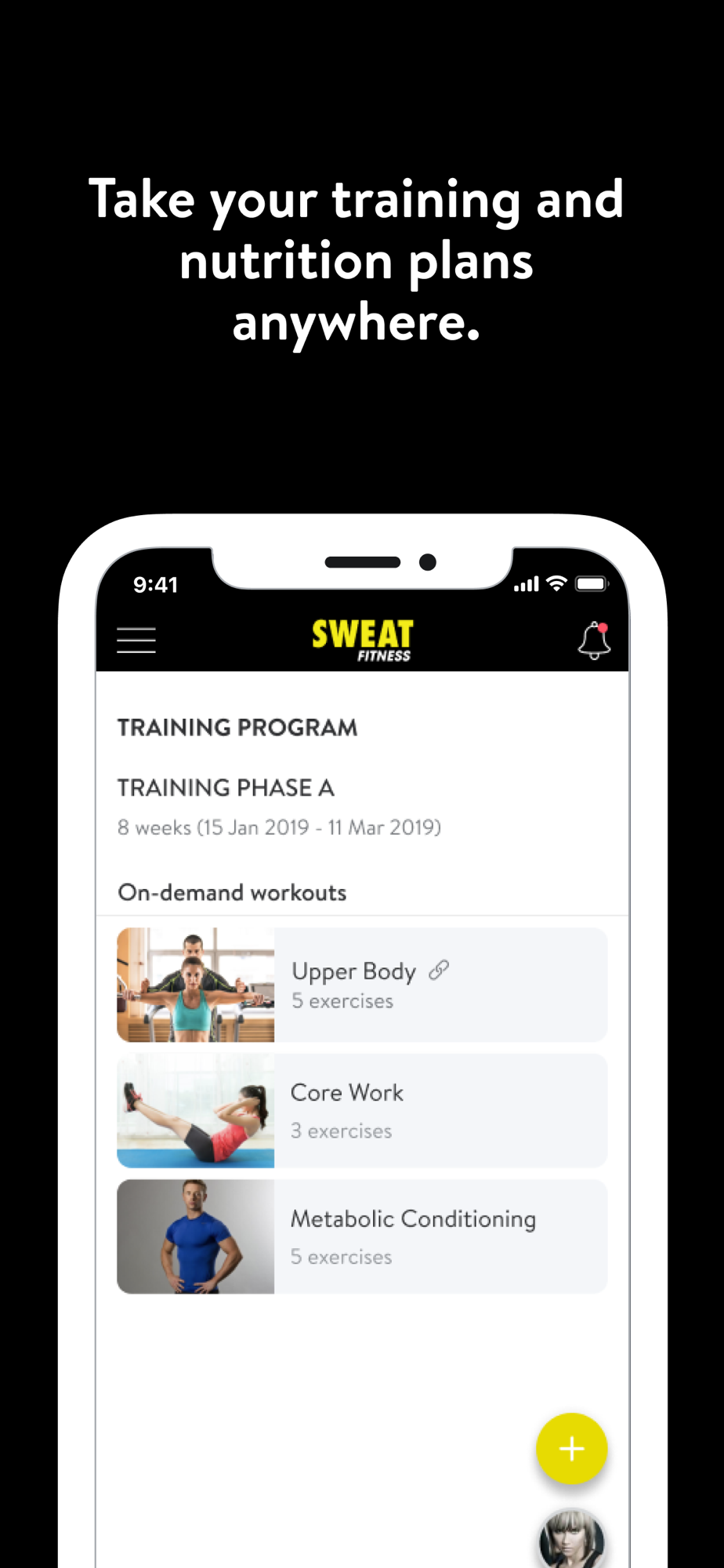With the Sweat Fitness App, you can start tracking your workouts and meals, measuring results, and achieving your fitness goals, all with the help of your personal trainer.