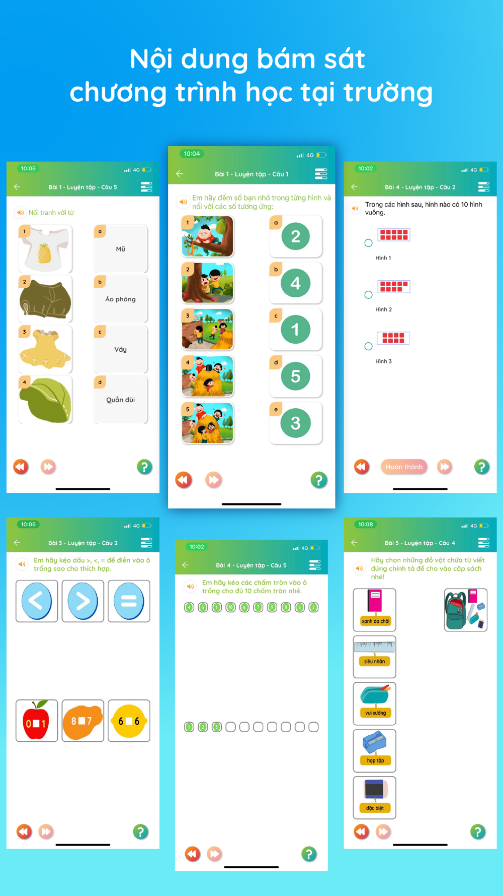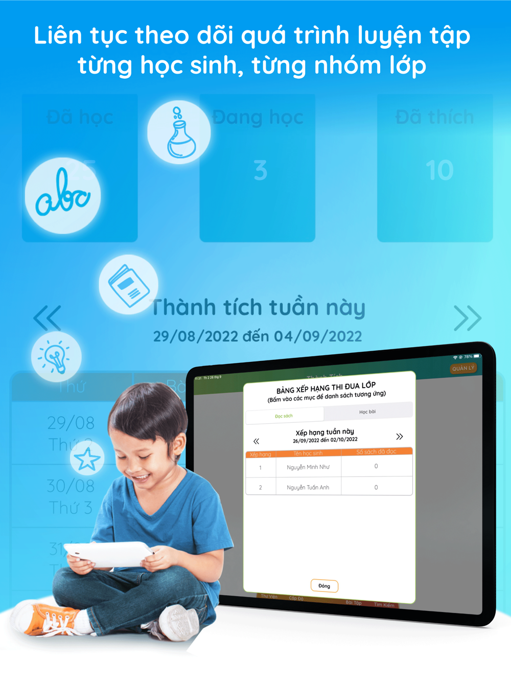- Dễ dàng theo dõi quá trình luyện tập của từng học sinh, từng lớp, toàn khối, toàn trường