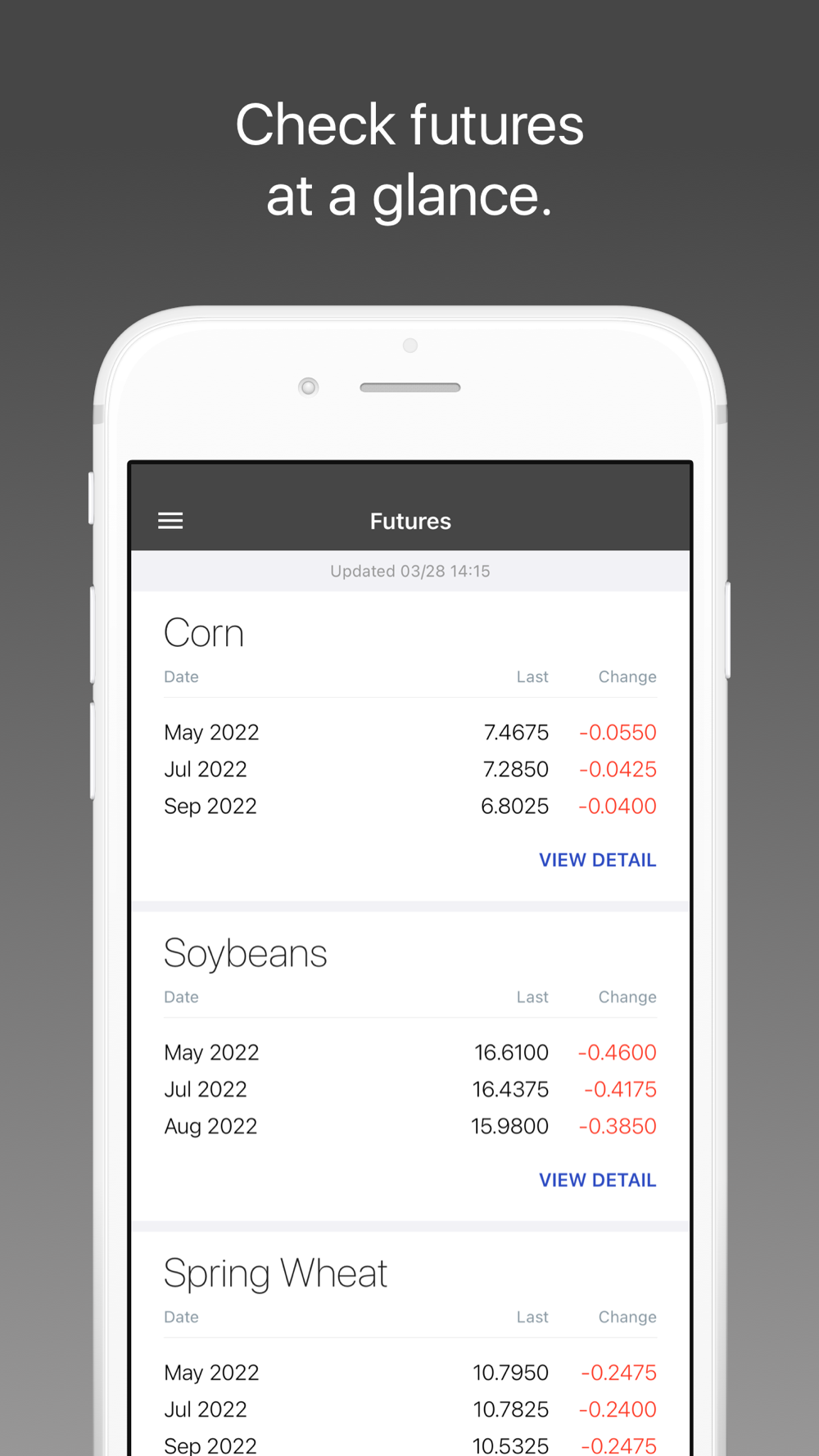 Futures: See Grains, Feed, Livestock, and Ethanol futures listed in order of your preference