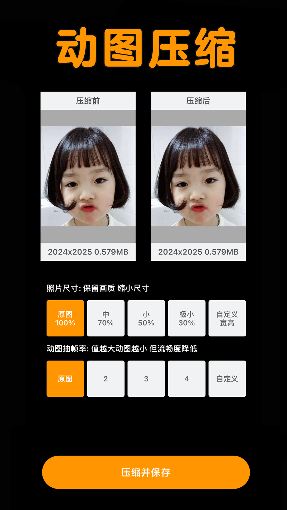 实时预览:支持实时改变压缩参数,实时预览原图与压缩后的动图