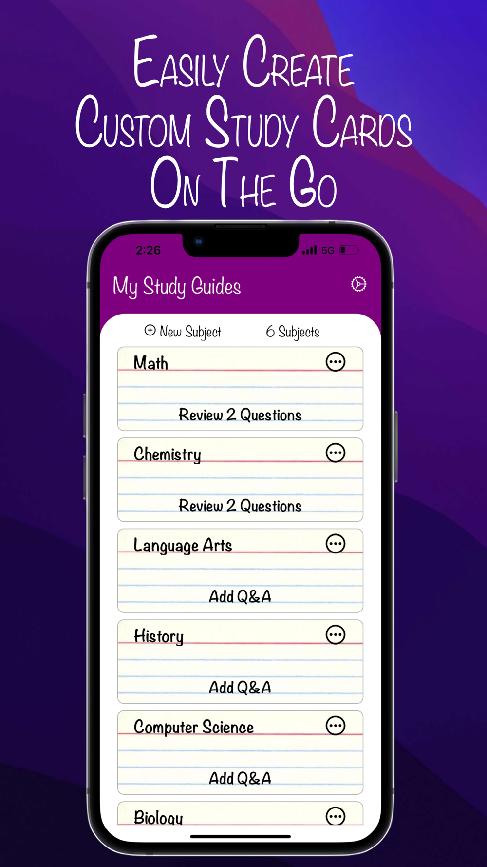 With our app, you can easily create custom flashcards for any subject, whether you're studying for a big test or just trying to learn a new language. Simply input the information you want to remember with the corresponding definition, or explanation to make your flashcards more interactive and engaging.
