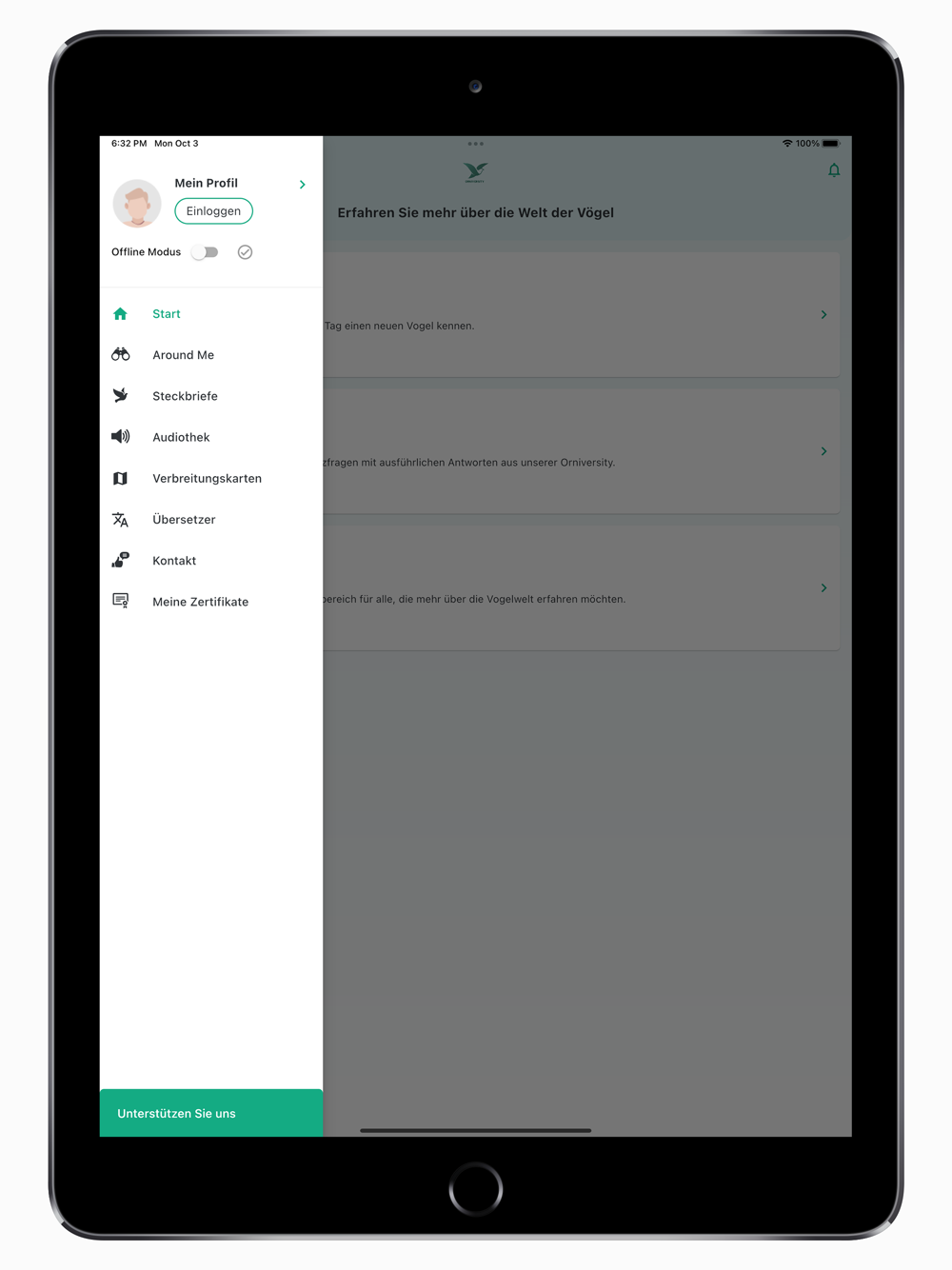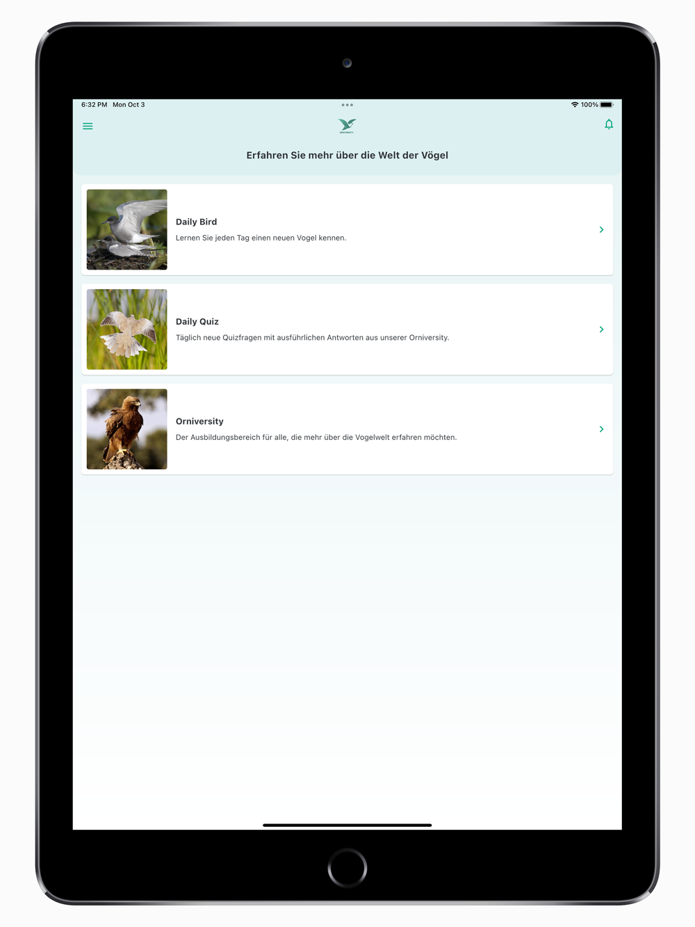 Wir möchten Ihnen mit dieser App die Möglichkeit bieten Ihr Wissen ganz nach Ihren Interessen in der Ornithologie zu erweitern.