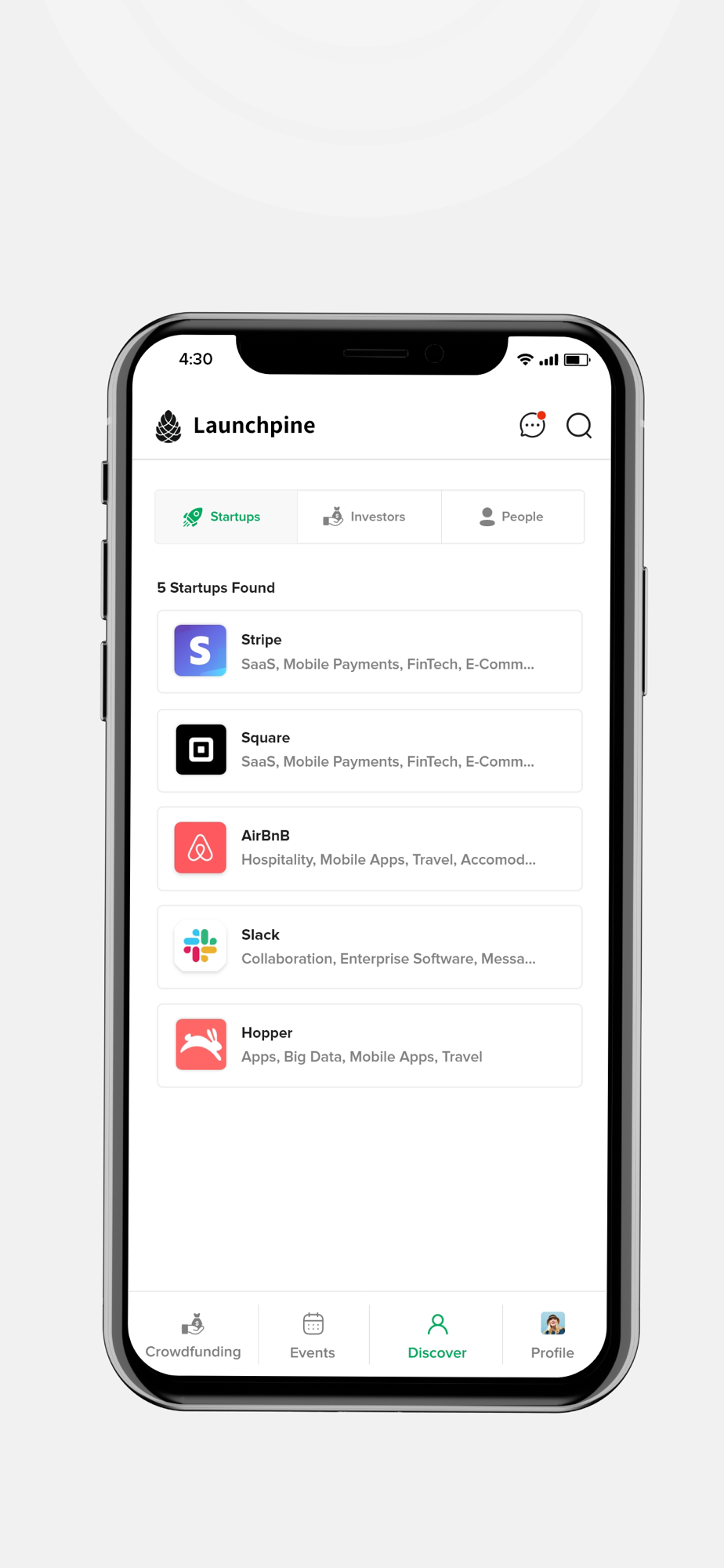 Launchpine is a social networking app for the business community. It connects young entrepreneurs and founders with potential investors.
