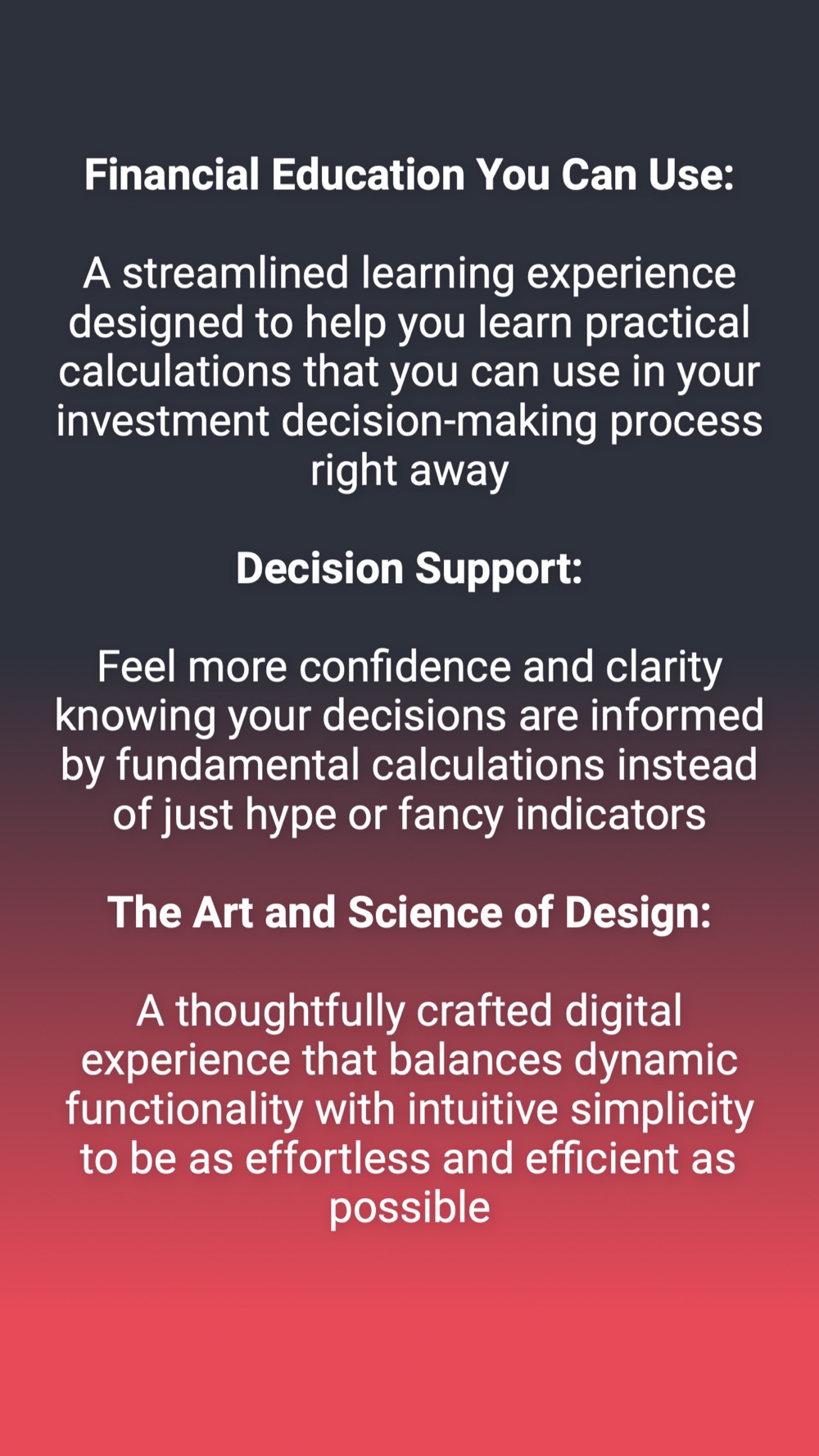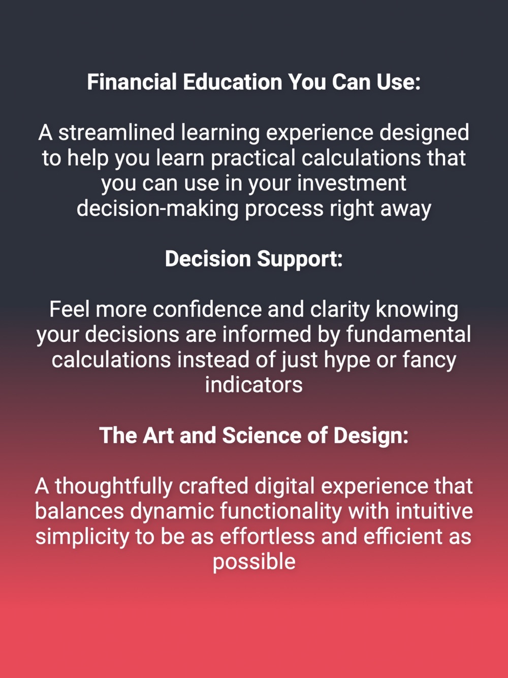 Introducing a new way to calculate investment fees. EXD Fees is an educational decision support tool that combines a streamlined learning experience with practical fee calculations that you can use in your investment decision-making process right away. EXD Fees was designed to deliver a user experience that balances dynamic functionality with intuitive simplicity. We leverage our extensive and ongoing research in decision science, game theory, behavioural science, and UX/UI design to ensure our products are as effortless and efficient as possible.