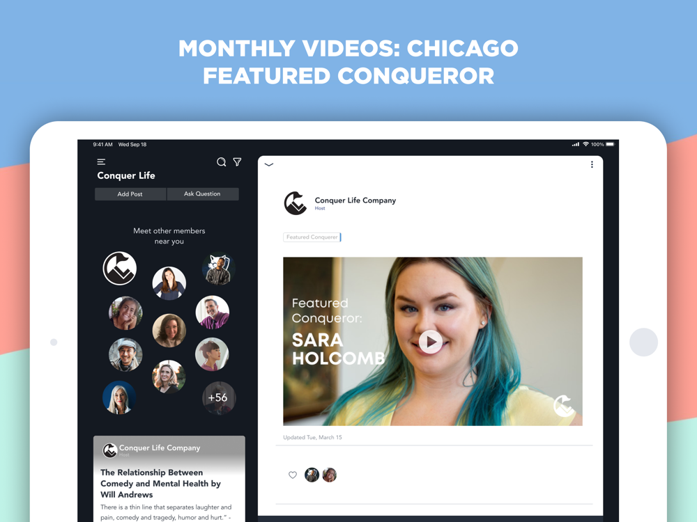 Conquer Life is a new and unique community for those interested in nourishing and fueling their mental wellness. With livestreams, polls, daily affirmations, live streams, articles, mental health resources, and much, much more, Conquer Life is your new go-to app for those wanting to take care of their minds. Unlike other mental health apps, Conquer Life is focused on community. Through our app, you can connect and engage with others who keep their mental fitness a priority. For just 17.99 a month or 199.99 a year, you can empower your mind and become a Conqueror today.